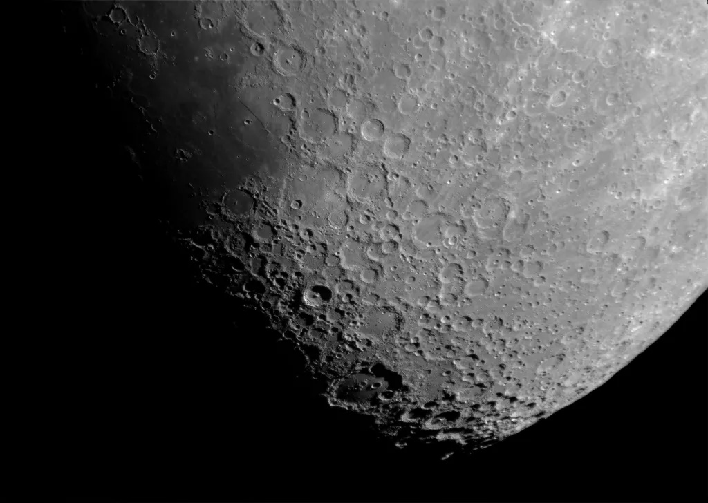 オルソエクステンダー4×の作例「月面」(2024年5月撮影)、(機材情報)光学系:TOA-130NFB + オルソエクステンダー4×、フィルター:Player One Anti-Halo UV/IRカットフィルター、カメラ:ZWO ASI294MM Pro、冷却温度:+15℃、ゲイン:350、露光時間:0.003秒×2000フレーム(うち上位1500フレーム使用)画像クリックで拡大表示