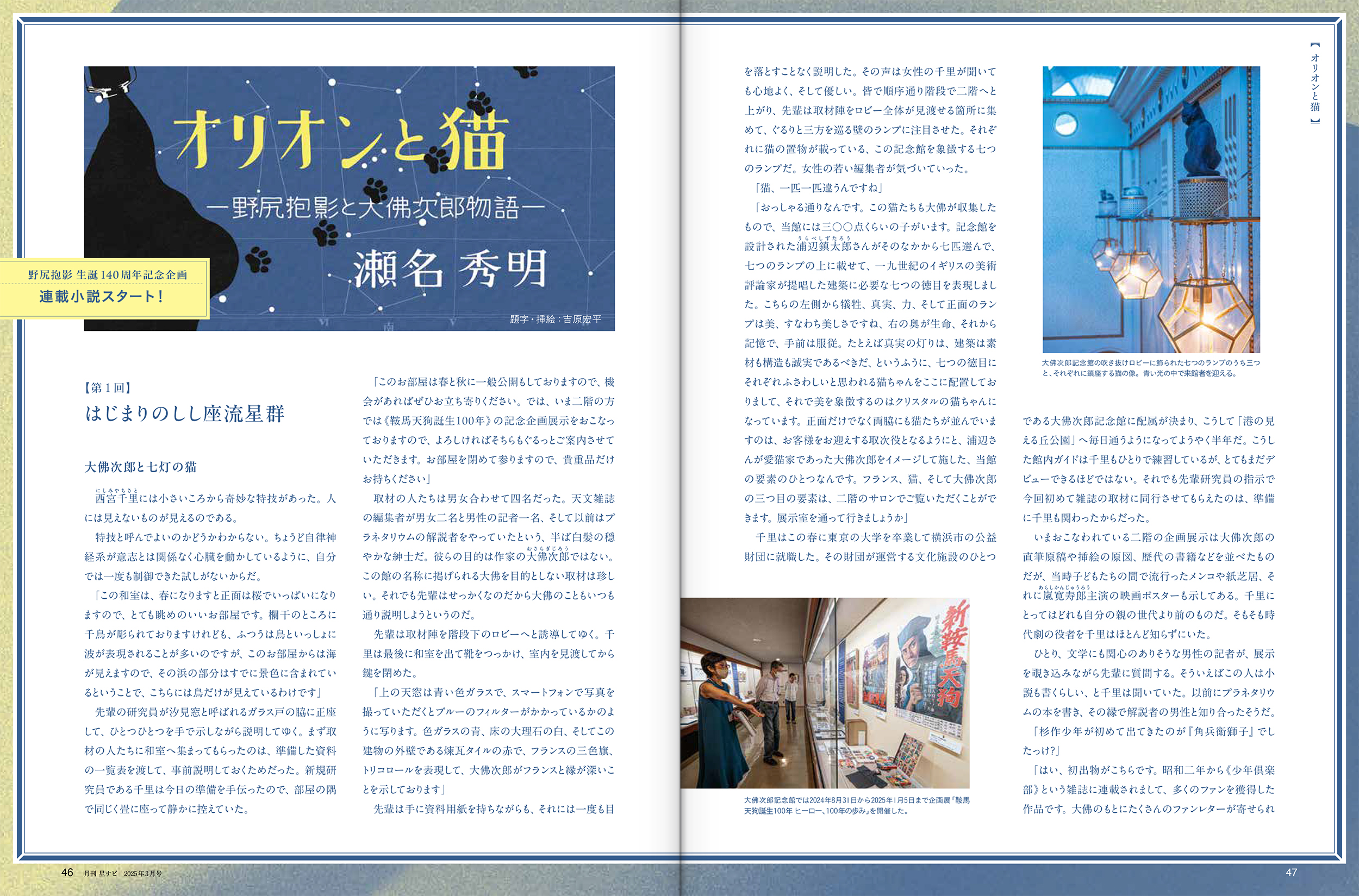 「パラサイト・イヴ」「虹の天象儀」でおなじみの小説家・瀬名秀明さんによる連載小説がスタート。小説家・大佛次郎と星の和名の研究で知られる野尻抱影、2人の兄弟がテーマです。