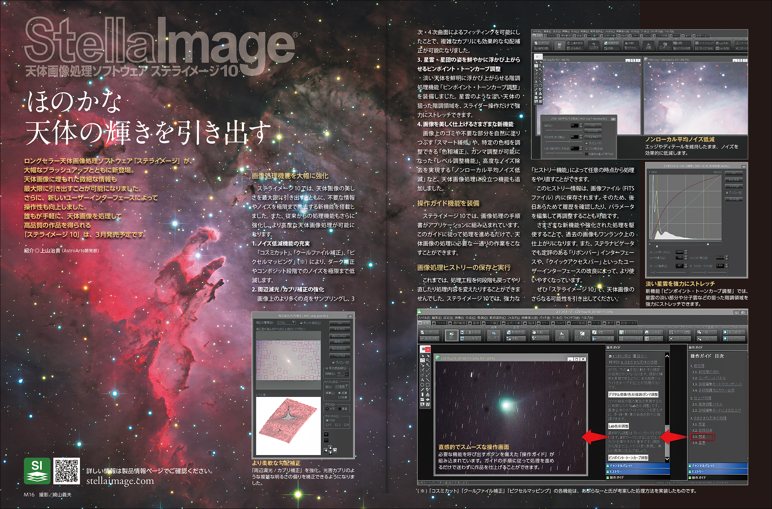 天体画像処理ソフトウェア「ステライメージ10」が大幅ブラッシュアップとともに新登場します。初めてでも安心な「操作ガイド」や、処理のやり直しが可能な「ヒストリー」、大幅に強化された画像処理など、おすすめの機能を紹介します。