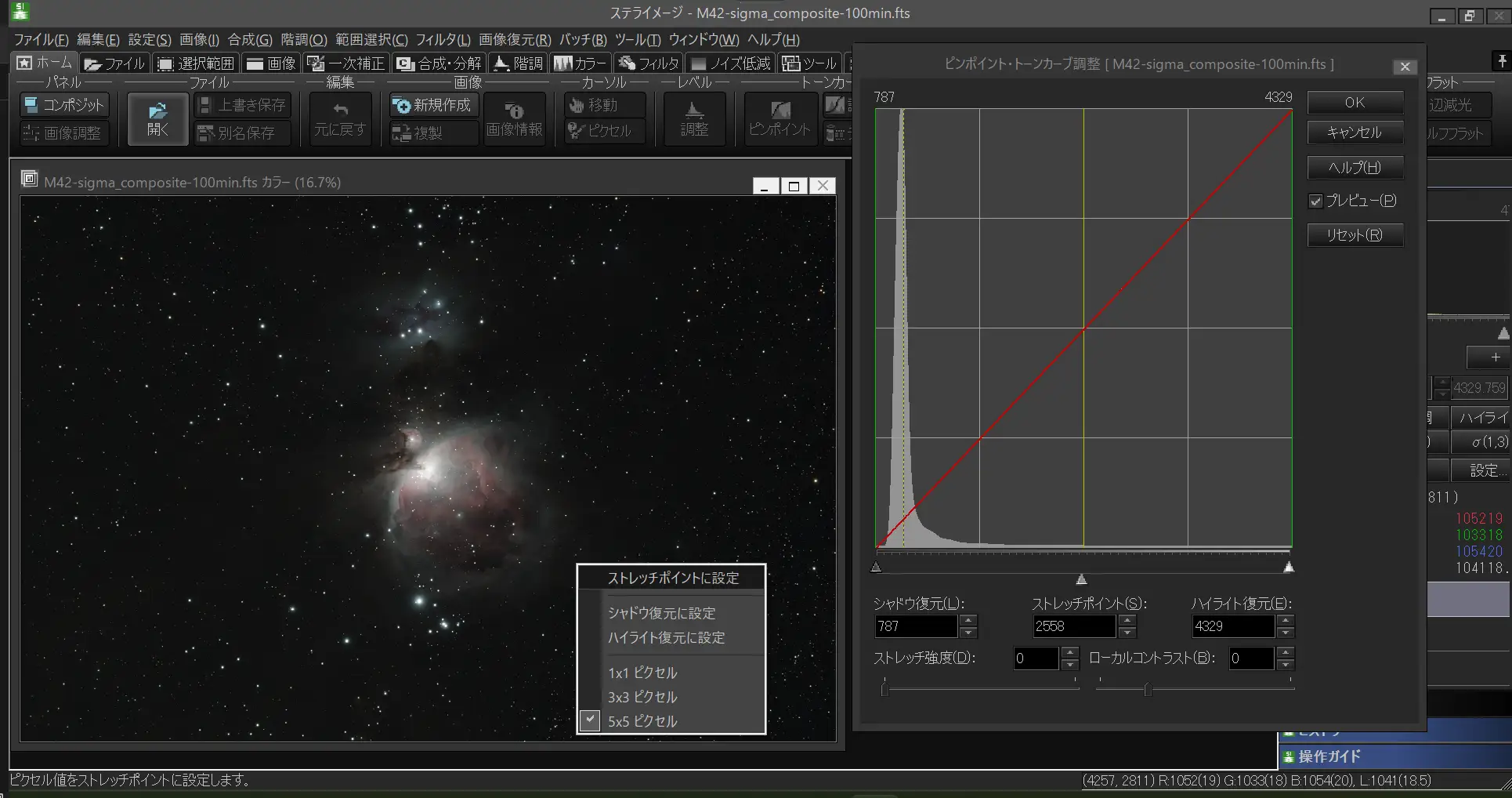 - 2025/07/17 ばら星雲の画像処理を「ステライメージ10」で体験