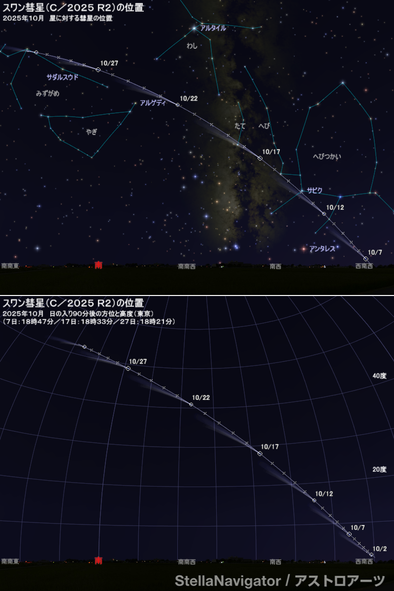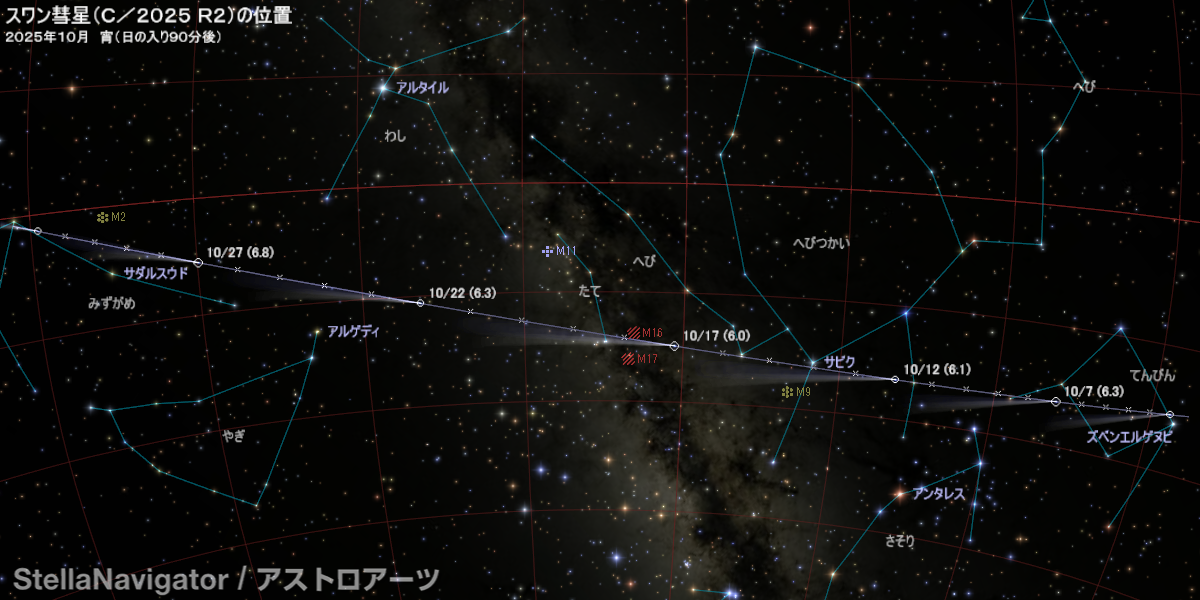 10月にスワン彗星(C/2025 R2; SWAN)が6等級前後まで明るくなると予測されている。