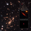 重力レンズ効果を受け大きく引き伸ばされた、はるか遠方に存在する銀河の姿をハッブル宇宙望遠鏡がとらえた。復元された銀河の像には若い星の群れがあちこちに見られる。