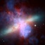 子持ち銀河の小さい方の中心に存在する超大質量ブラックホールが100万~200万年前に消化不良を起こし始め、周囲に物質を吹き飛ばしている様子が複数の波長の観測で示された。