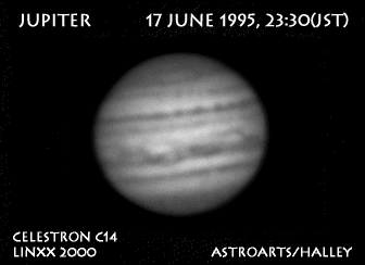 Sept. 11, 1997 22:53 JST(1/2 sec.) NikonFE 18cmF5.5 reflector(extended by Or7mm relay lens, F45) Fujichrome Provia400(-1, ISO200), partial enlarged KenIchi Kadota, Saitama, Japan |