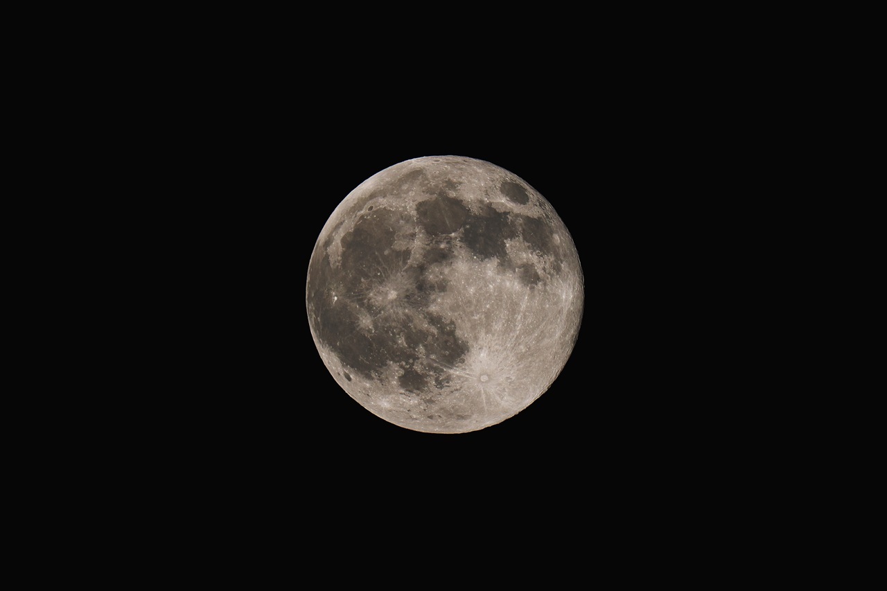未明の満月の撮影から17時間、輝面比100%のちょうど満月から7時間余りが経過しました。 急速に天候が回復して、きれいな宵の満月を撮ることが出来ました。