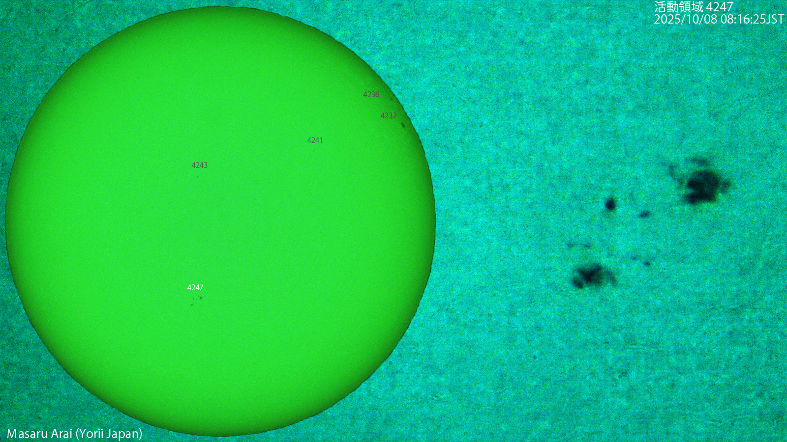 SE120L+DMC-GH1よる、活動領域 4247 ( Dro/---) です。 NICT情報:活動領域4232などでCクラスフレアが数回発生し、最大のものは、太陽面西端付近の活動領域で8日5時7分UTに発生したC9.1フレアでした。