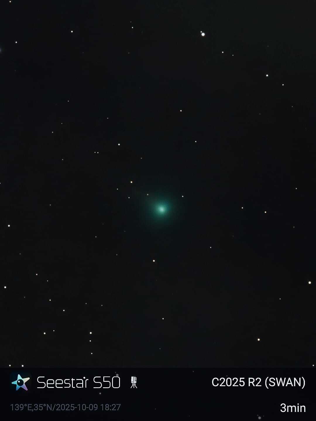 台風一過で晴れました。 自宅から狙える位置にやってきましたので、初のスワン彗星の撮影に成功。 すぐに沈んでしまいましたから、露光時間は3分が限界でした。