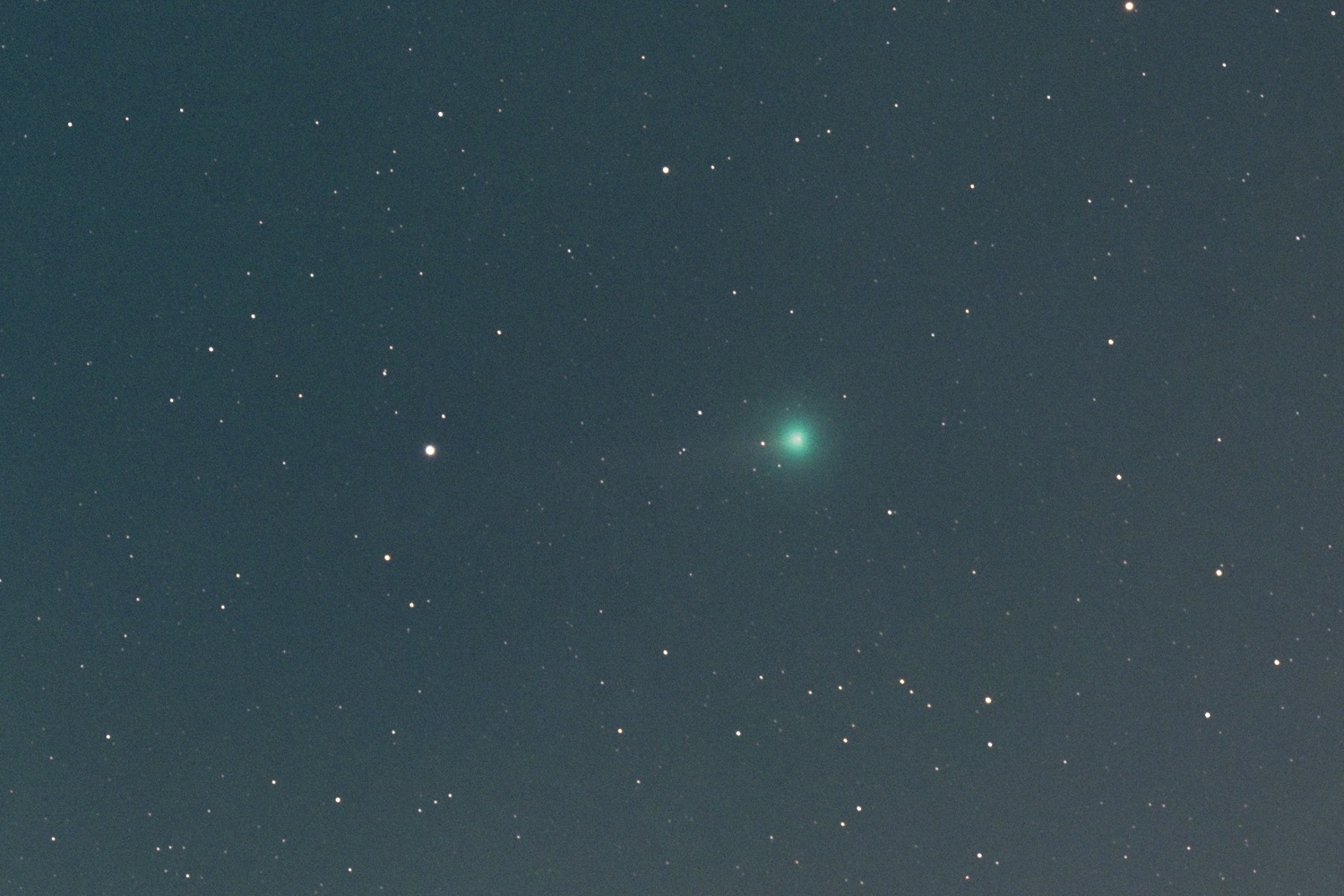 10月9日夕方のスワン彗星(C/2025 R2)を600mmで捉え1000mm相当にトリミングした画像になります。 また、8×56双眼鏡で楽に確認でき7.0等と見積もりました(プラズマテイルは未確認)。