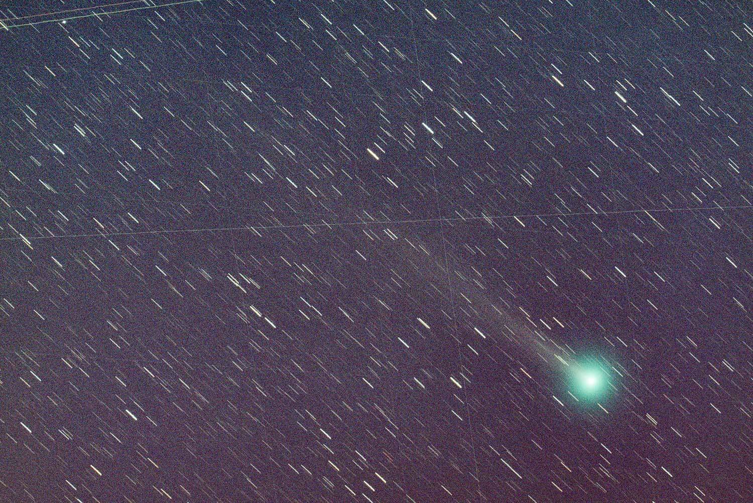 今日も阿蘇二重の峠交差点そばへ出向き撮影しました。昨日とほぼ同様の条件だったようで尾は長く写りました。60s16枚から強調、トリミングなし。