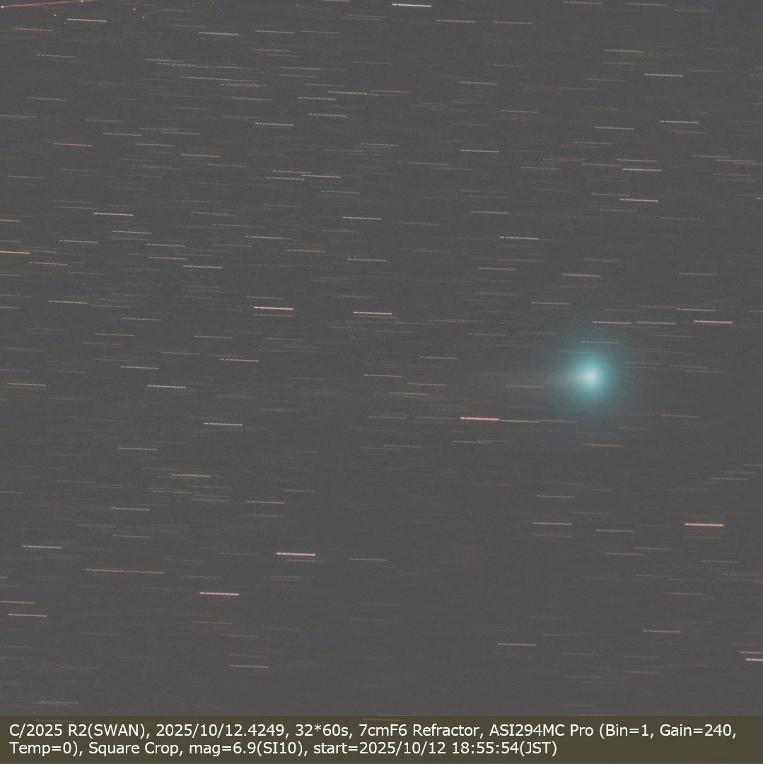 C/2025 R2(SWAN), 2025/10/12.4249, 32*60s, 7cmF6 Refractor, ASI294MC Pro (Bin=1, Gain=240, Temp=0), Square Crop, mag=6.9(SI10)