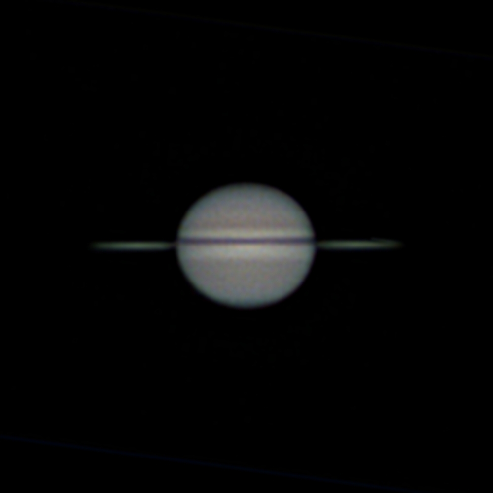 2025年10月13日の土星です。60秒動画10セットをWavelet処理してからDerotationで合成しました。大気は揺らいでいて細部は困難でした。