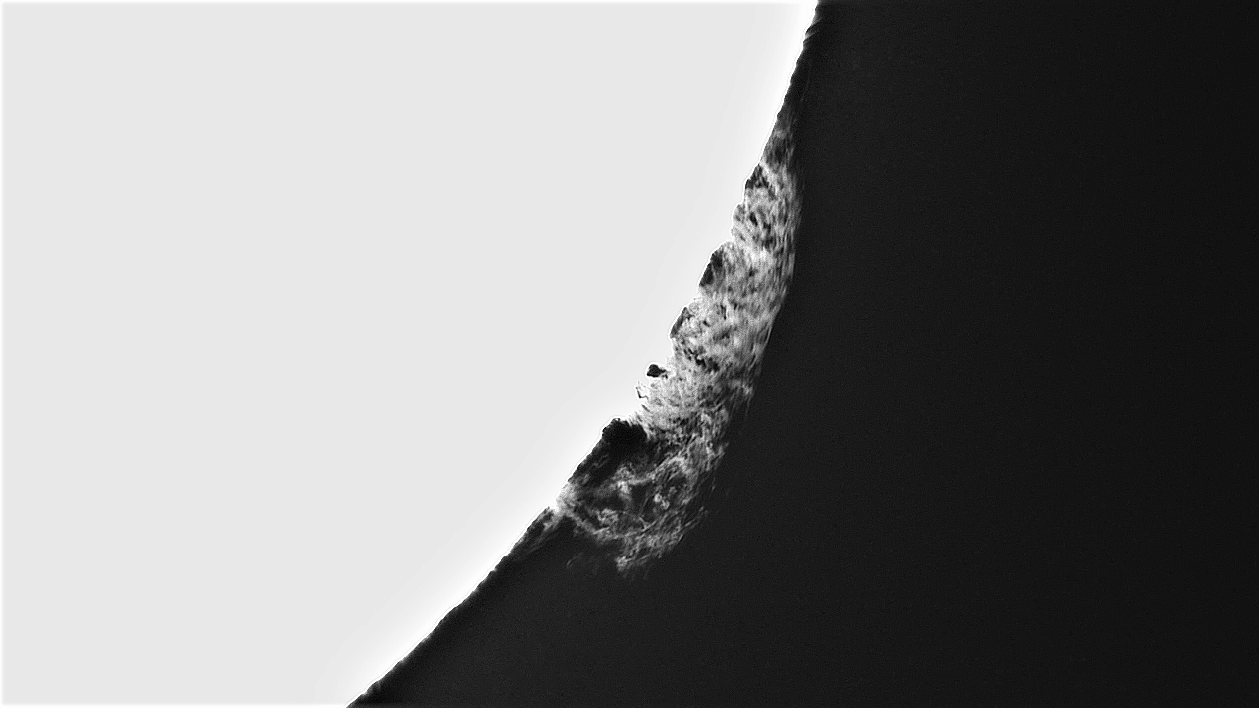 足腰のしっかりしたプロミネンス。噴出するには、まだ時間が必要か? 交叉して見える弓弧模様が面白いです。