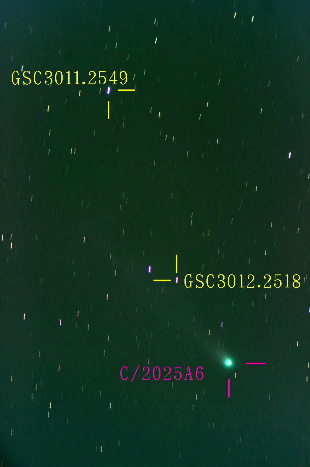 サザンクロスレモン彗星(C/2025 A6) 10月10日 400mm (彗星核コンポジット)