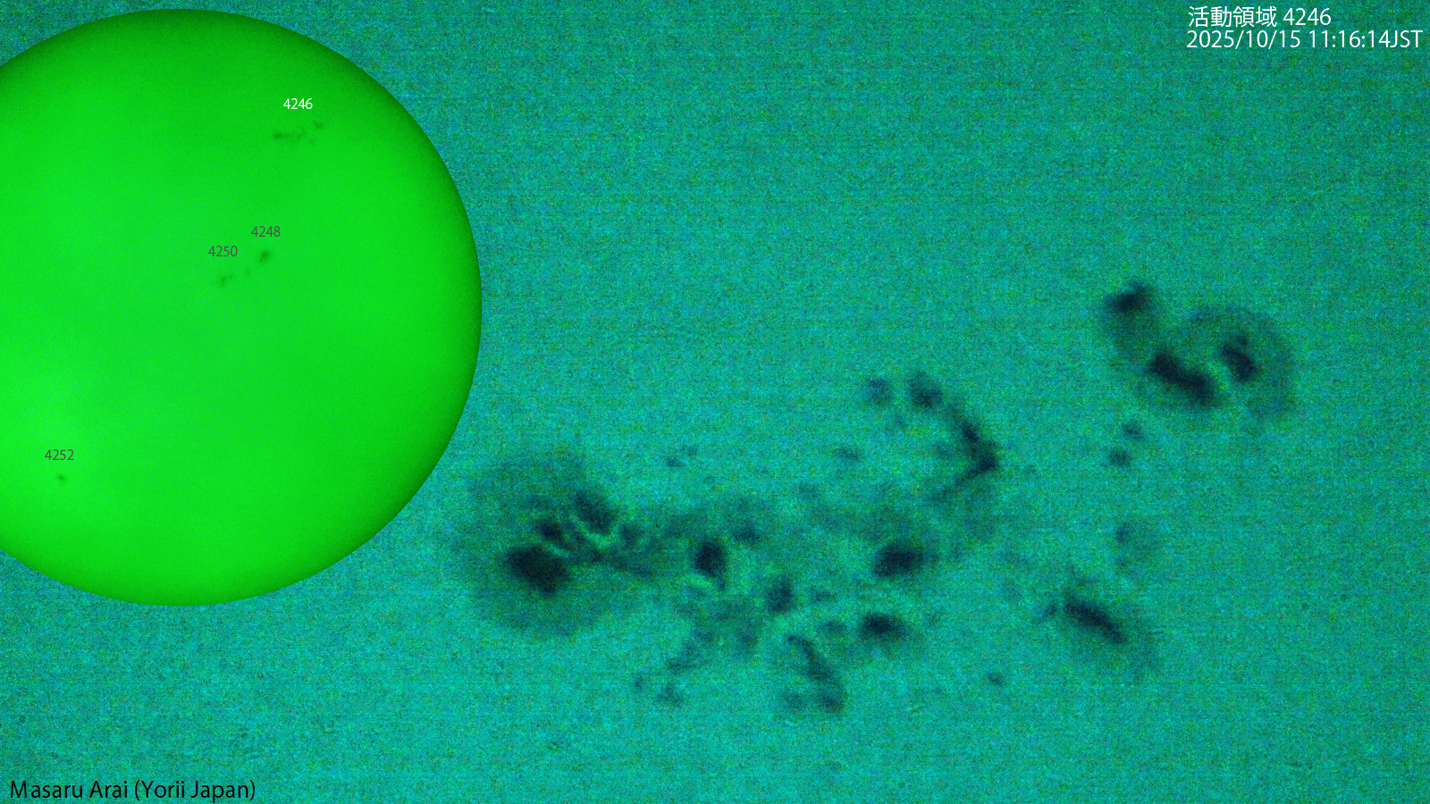 SE120L+DMC-GH1よる、活動領域 42446 ( Ekc/Ekc ) です。 NICT情報:活動領域4246で16日7時28分JSTに、太陽面でM2.7のLDEフレア(継続時間の長いX線フレア)が発生しました。