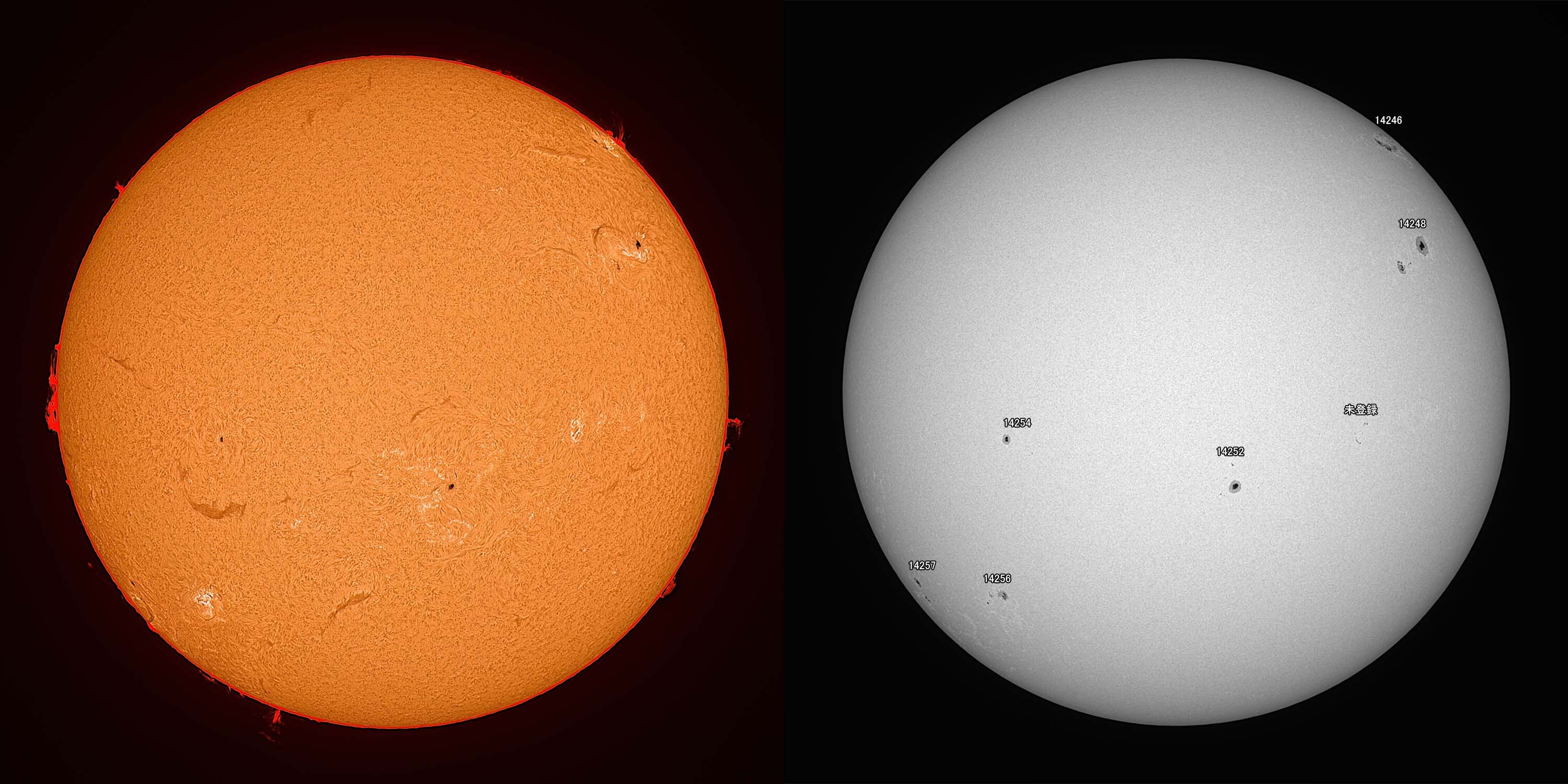光球面:FireCapture、ROI 3600x2400、Gain 100、1.65msec x1000、撮影時間 31秒/プロミネンス:FireCapture、ROI 3600x2400、Gain 300、1.65msec x1000、撮影時間 31秒