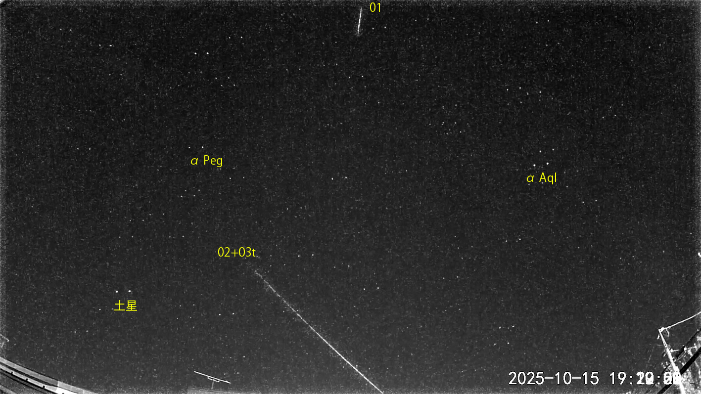 19:12から約時間の3コマを処理しました。20時以降は曇りました。 出現した順に数字と記号を始点付近に記入。tは痕traceあり。