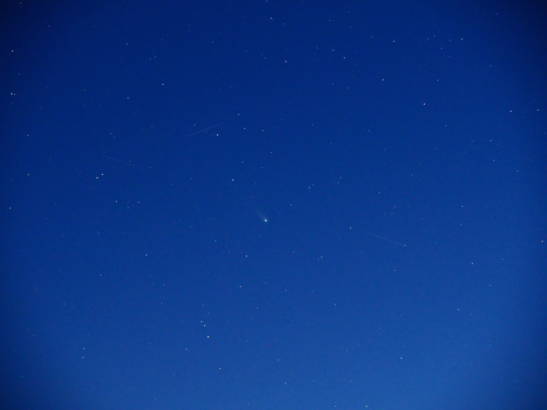本格的な撮影機材・編集機材も無く本人の技術も無いので長い尾は取れませんが、一応レモン彗星の確認は出来ました。 夜勤が終わって空がだんだん白んでくる中、いろいろ設定を試す間も無く…素人の1発撮りでした。 マイクロフォーサーズカメラですのでレンズの換算距離倍となります。