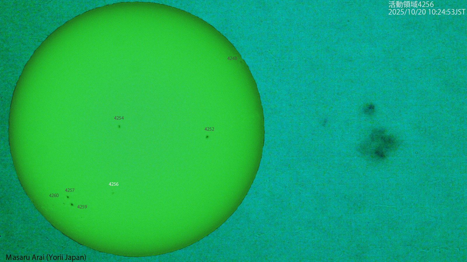 SE120L+DMC-GH1よる、活動領域 4256( Cao/Dao ) です。 NICT情報:活動領域4257などでCクラスフレアが数回発生し、最大のものは、太陽面東端付近の活動領域で21日15時49分JSTに発生したC3.7フレアでした。