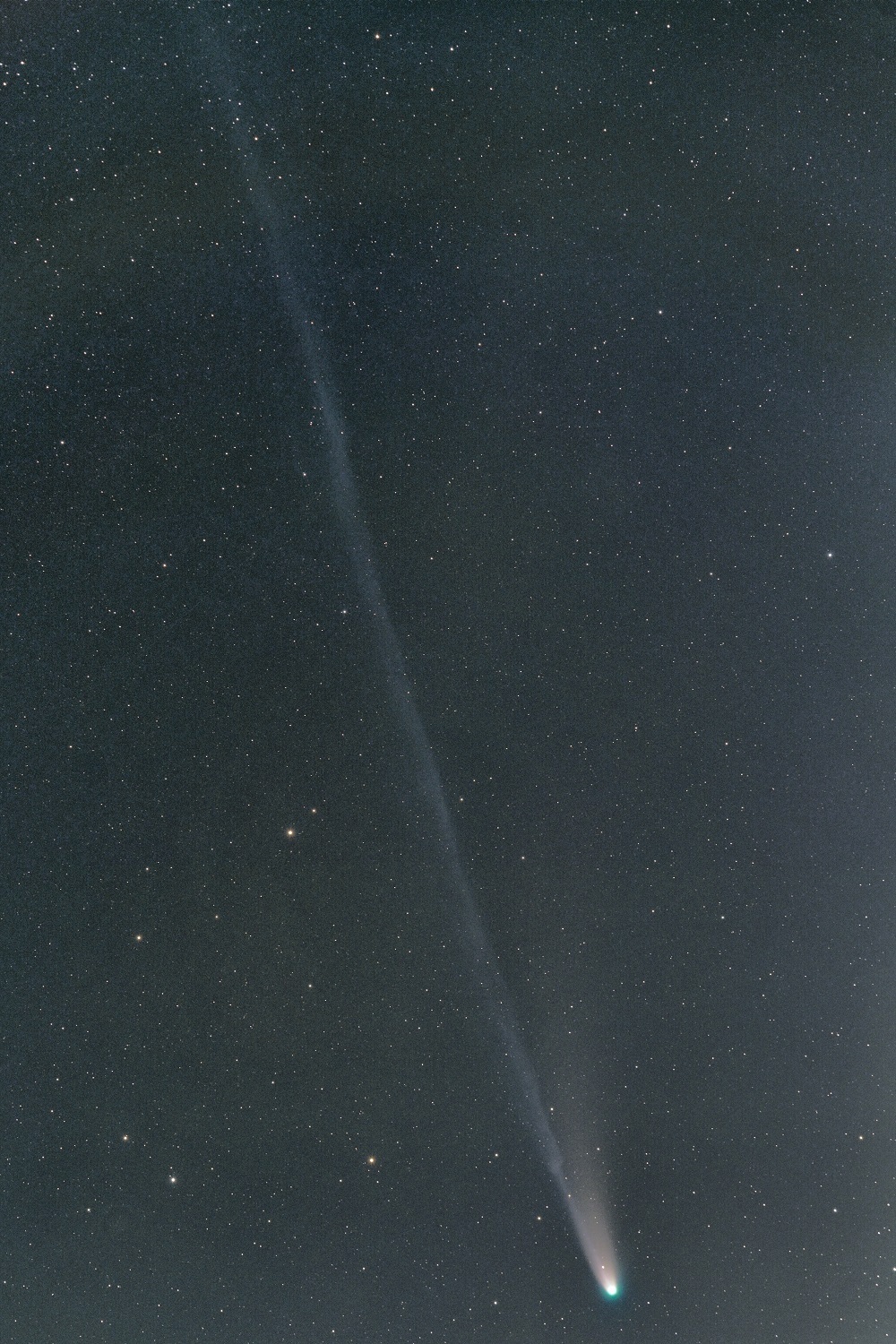 10月23日夕方のレモン彗星 (C/2025 A6)を200mmで捉え300mm相当にトリミングした画像になります(透明度が良好でイオンテールが映える描写となりまし・・・)。 また、肉眼でも確認でき8×56双眼鏡で4.5等と見積もりました(尾も双眼鏡視野をはみ出すのが確認できました)。