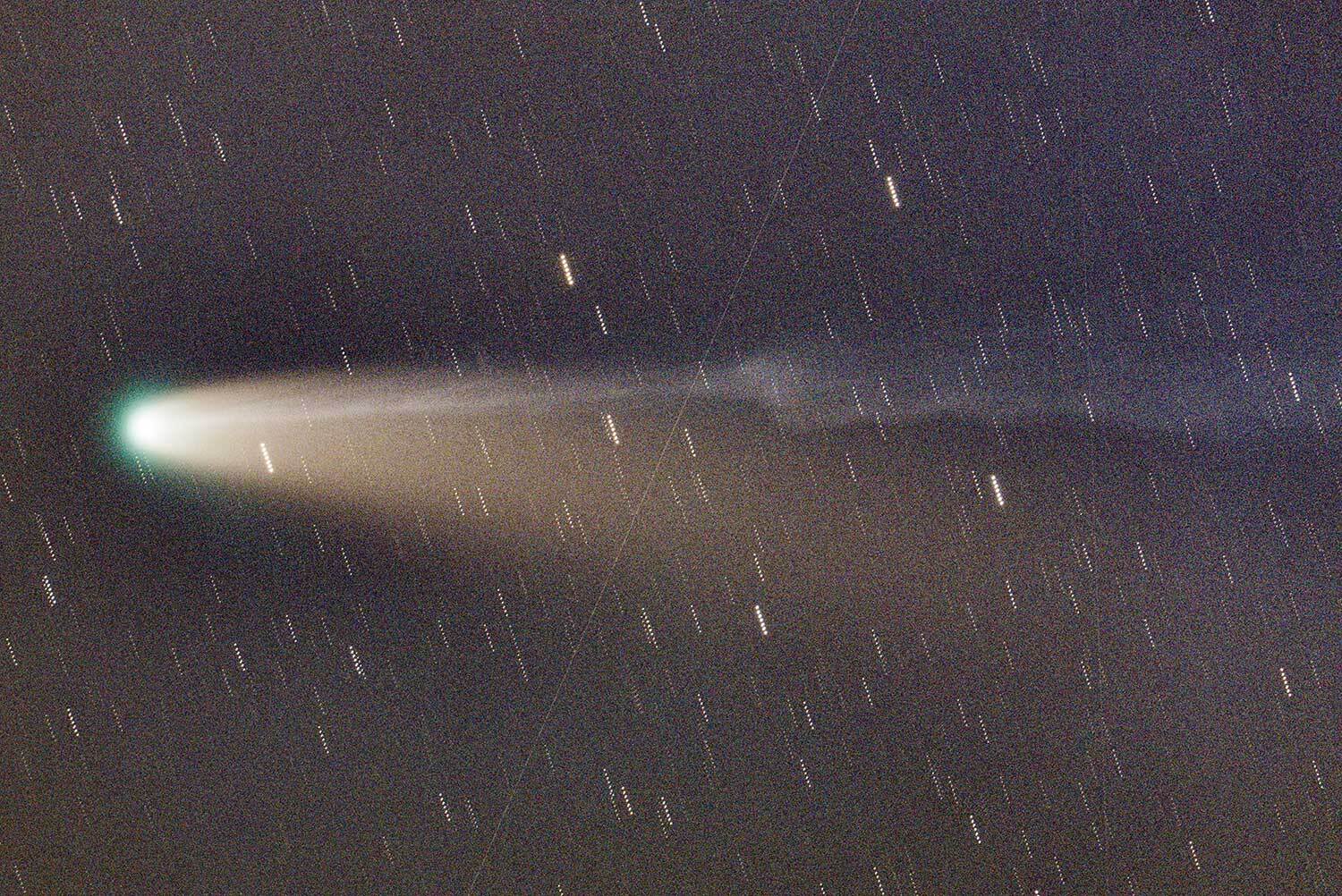 熊本では曇るとの予報を見て福岡県古賀市へ遠征して撮影しました。120s7枚から強調しています。地球に近づき変化を期待していたのですが、尾はコブなどがあって面白いものの、前回18日の画像と比べておくなしくなったようです。当地ではモヤがきつく、3cm双眼では存在がわかるものの、肉眼では見えず残念でした。