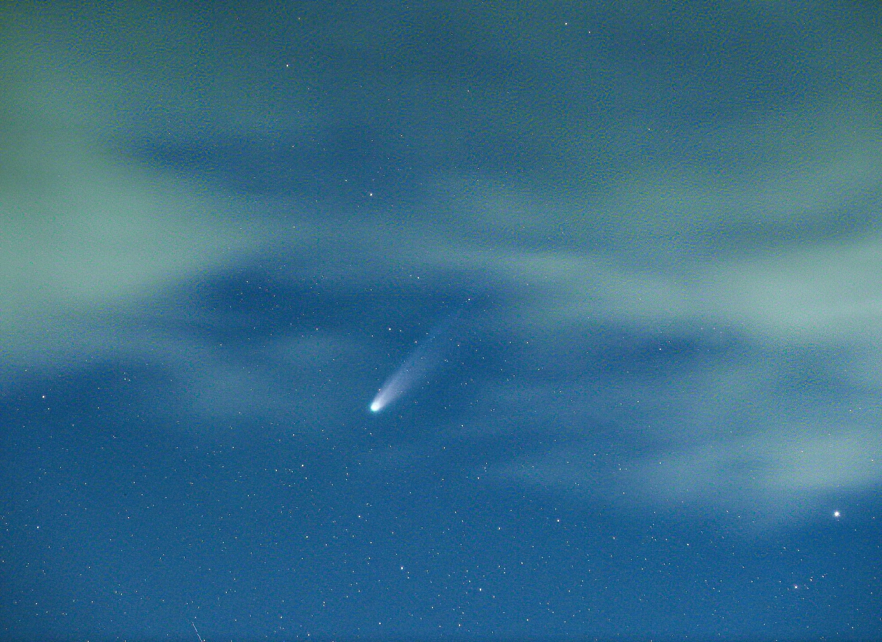 薄明の残る中、雲の中での撮影でこの1枚しか尾がわかりませんでした。(1枚撮りで荒いです。)