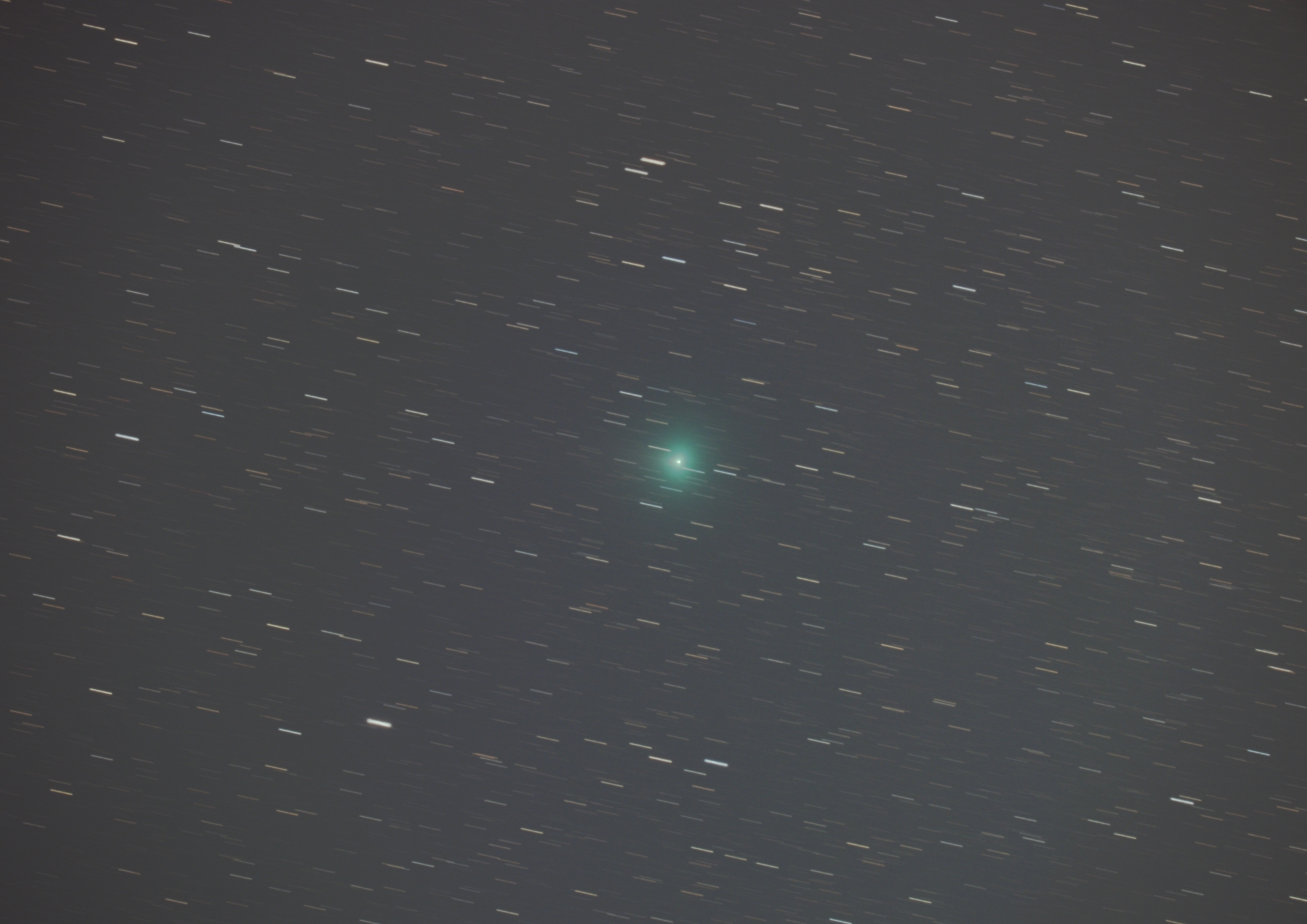 SWAN彗星(C/2025 R2) 夕方快晴でしたが、撮影開始直後全天雲に覆われ中断、20時頃一時的に雲間ができ撮影できました。(iso3200×15s×n43)。残念ながら西側には山があり視界が悪くレモン彗星は見えません。