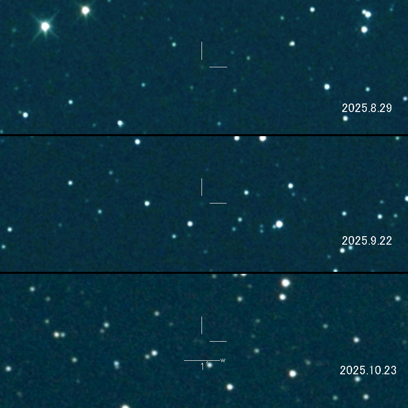 2025.8.29 → 17等級前半 2025.9.22 → 17等級前半 2025.10.23 → 17等級前半 アウトバーストで20等級から増光しました。 少しずつ拡散しているイメージです。