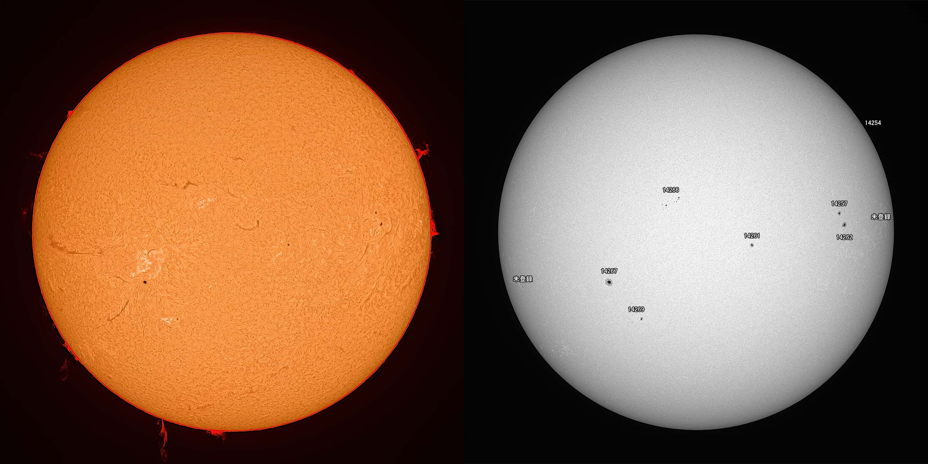 光球面:FireCapture、ROI 3600x2400、Gain 100、21.55msec x1000、撮影時間 31秒/プロミネンス:FireCapture、ROI 3600x2400、Gain 300、1.55msec x1000、撮影時間 31秒