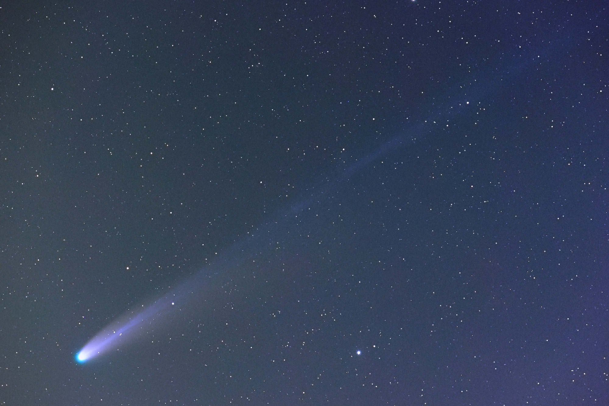 晴れれば彗星の撮影に出かけているので、撮影後の画像処理が追いつきません。27日は妙義山で撮影しましたが、西空の低空は軽井沢方面の光害の影響を受けています。レモン彗星の光度は3.9等と見積もりました。尾が長く伸びているので、大きめの双眼鏡で眺めるのが一番きれいですね。