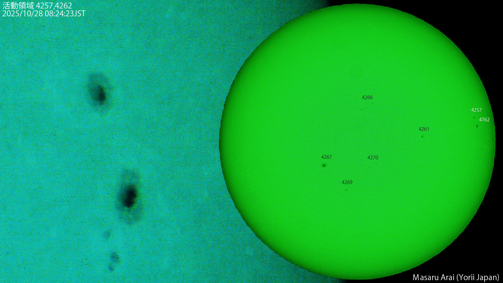 SE120L+DMC-GH1よる、活動領域 4257 ( Hsx/Hsx ) 4262 ( Cso/Cso ) です。 NICT情報:活動領域4256などで、Bクラスの小さな活動が数回発生しました。