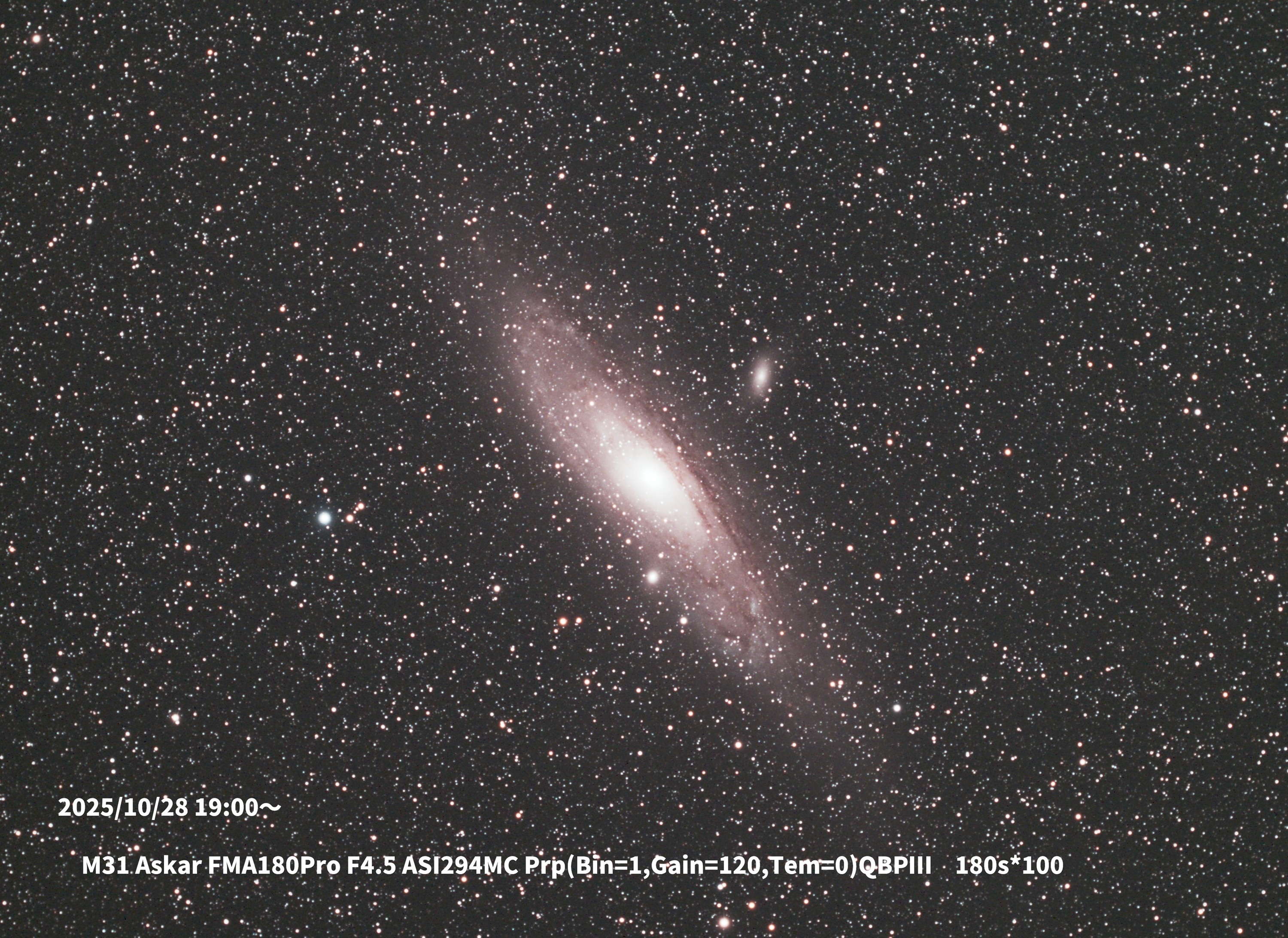 QBPⅢフィルター Bin=1,Gain=120,Tem=0 180s*100 仲間三人とレモン彗星確認後、おひとり様で撮影