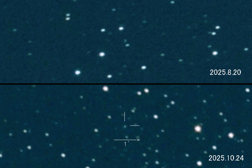 2025.8.20 → 15等級前半 2025.10.24 → 15等級前半 2027年10月26日が近日点で 2027~2028年に13等級になるという予想です。