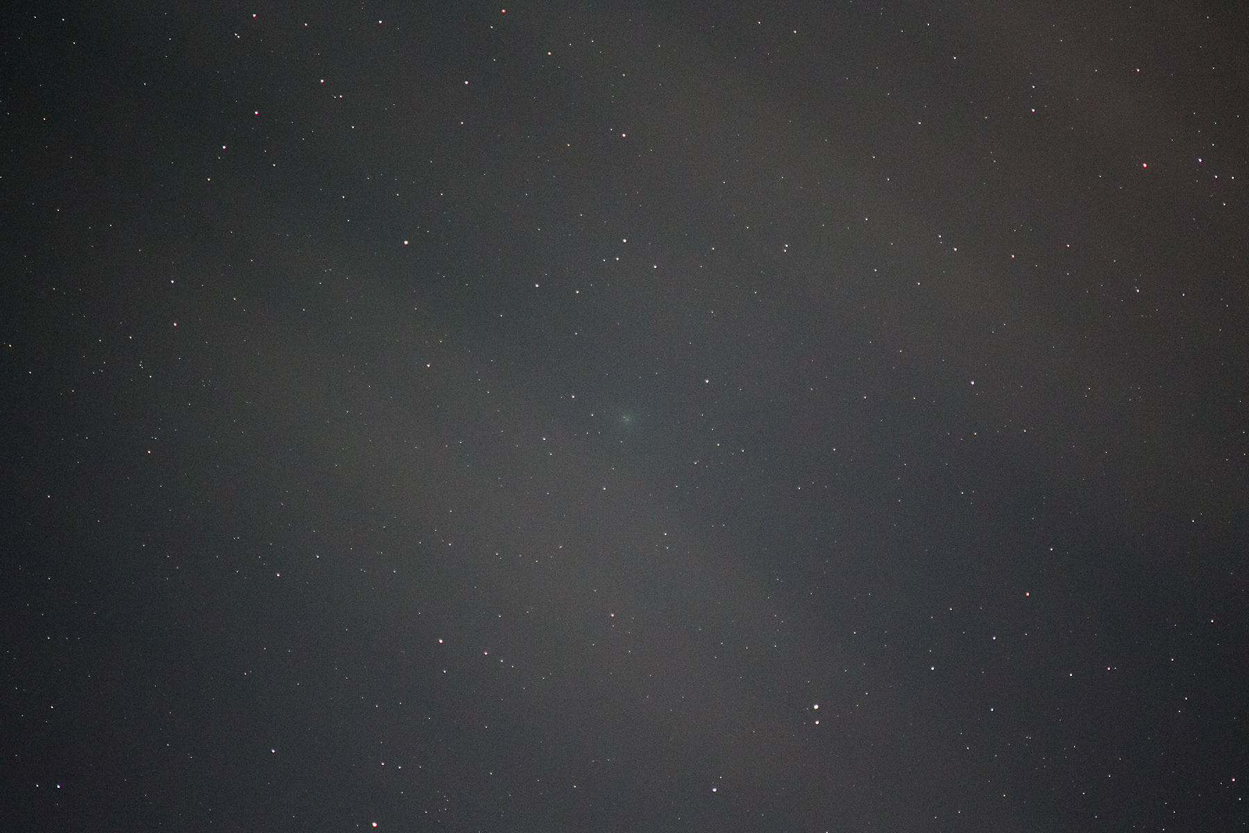 レモン彗星、上弦の月と撮影しているうちに全天雲が増え、雲と彗星のすぐ下方にある月の影響でどのカットも真っ白。しかしなんとかあぶり出しました。
