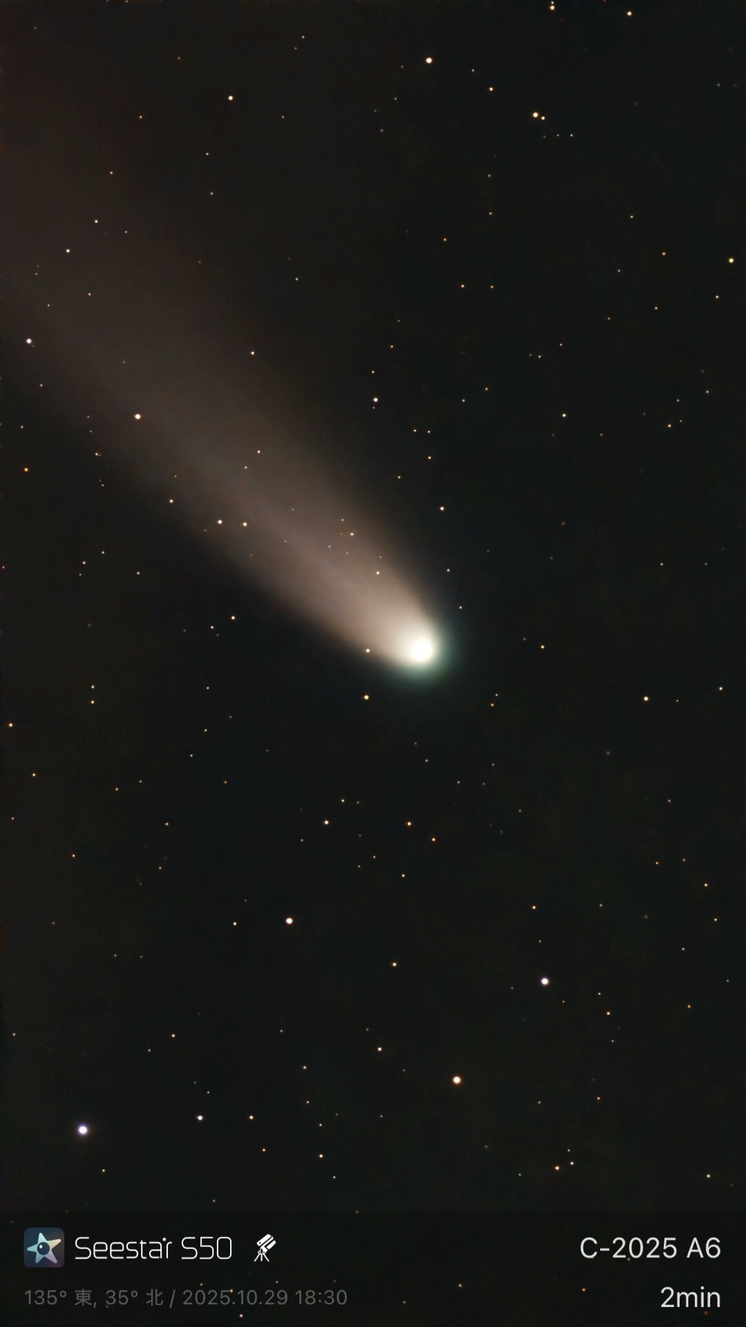 Seestar s50 スタック処理画像(20秒×336コマ)赤道儀モード