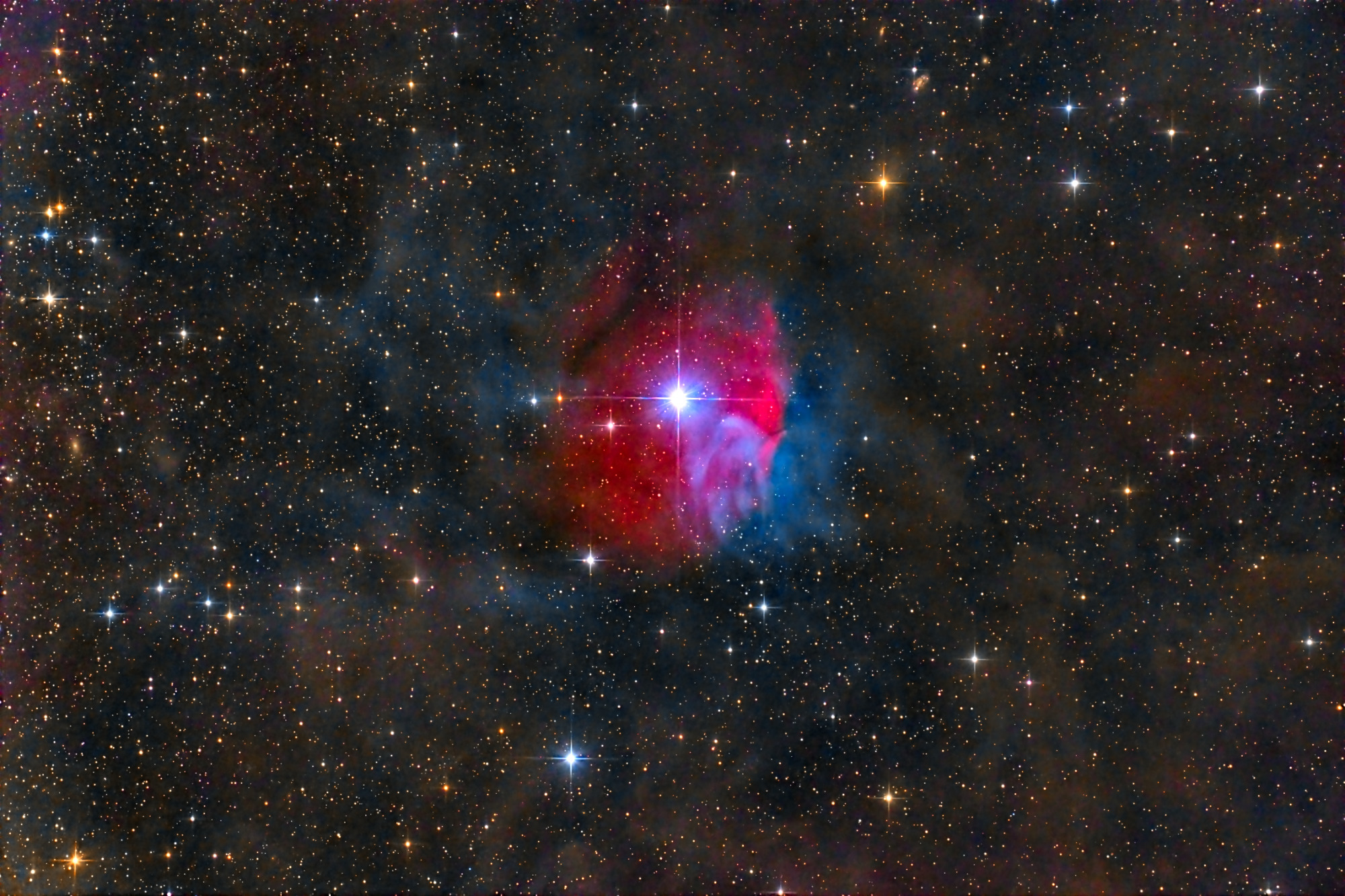 PixInsight(PI)でバイアス・フラット補正、コンポジット、RGB変換、2×drizzle、PIでBlurXTerminator、NoiseXTerminator、ストレッチ(GHS)、StarXTerminatorで星雲強調処理、仕上げはAffinity Photo2を利用