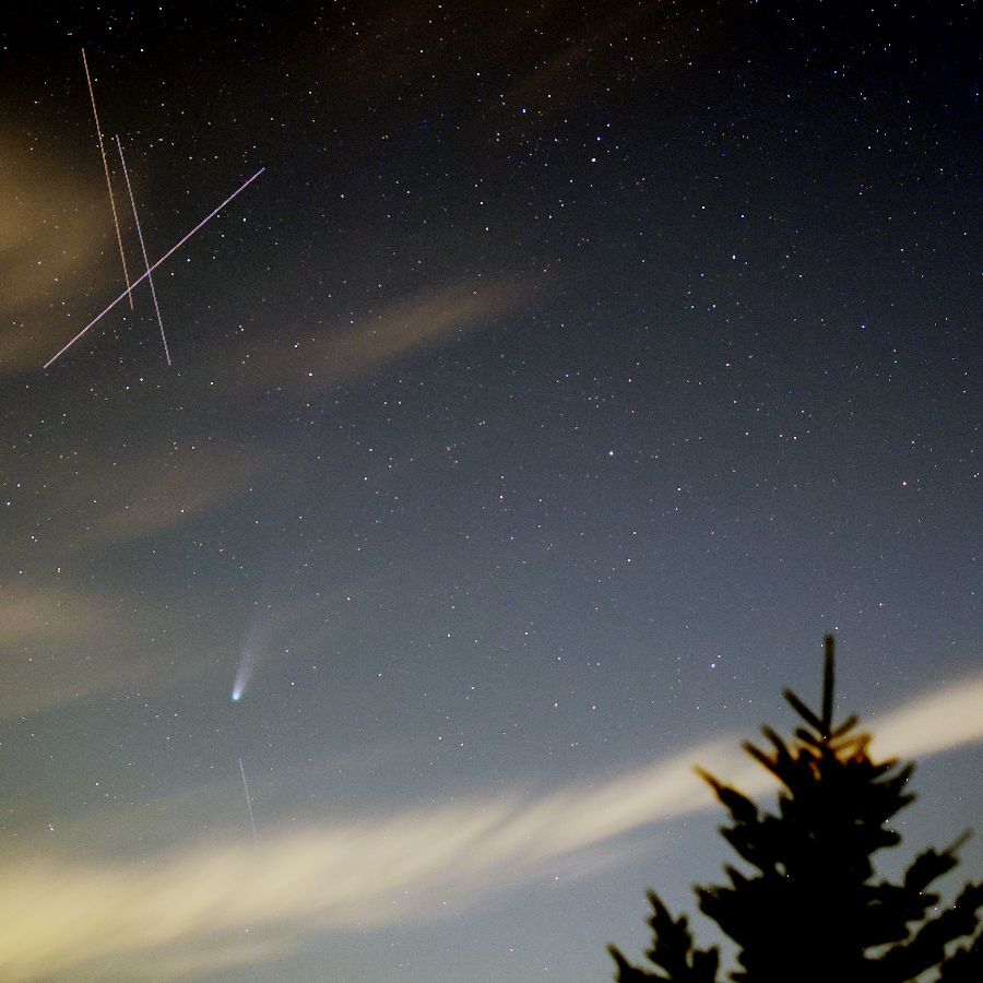 C/2025 A6(Lemon)レモン彗星です。19時前になると高度が低くなり・・・雲が襲来して人工衛星が飛び交って賑やかです。(片山 徹)