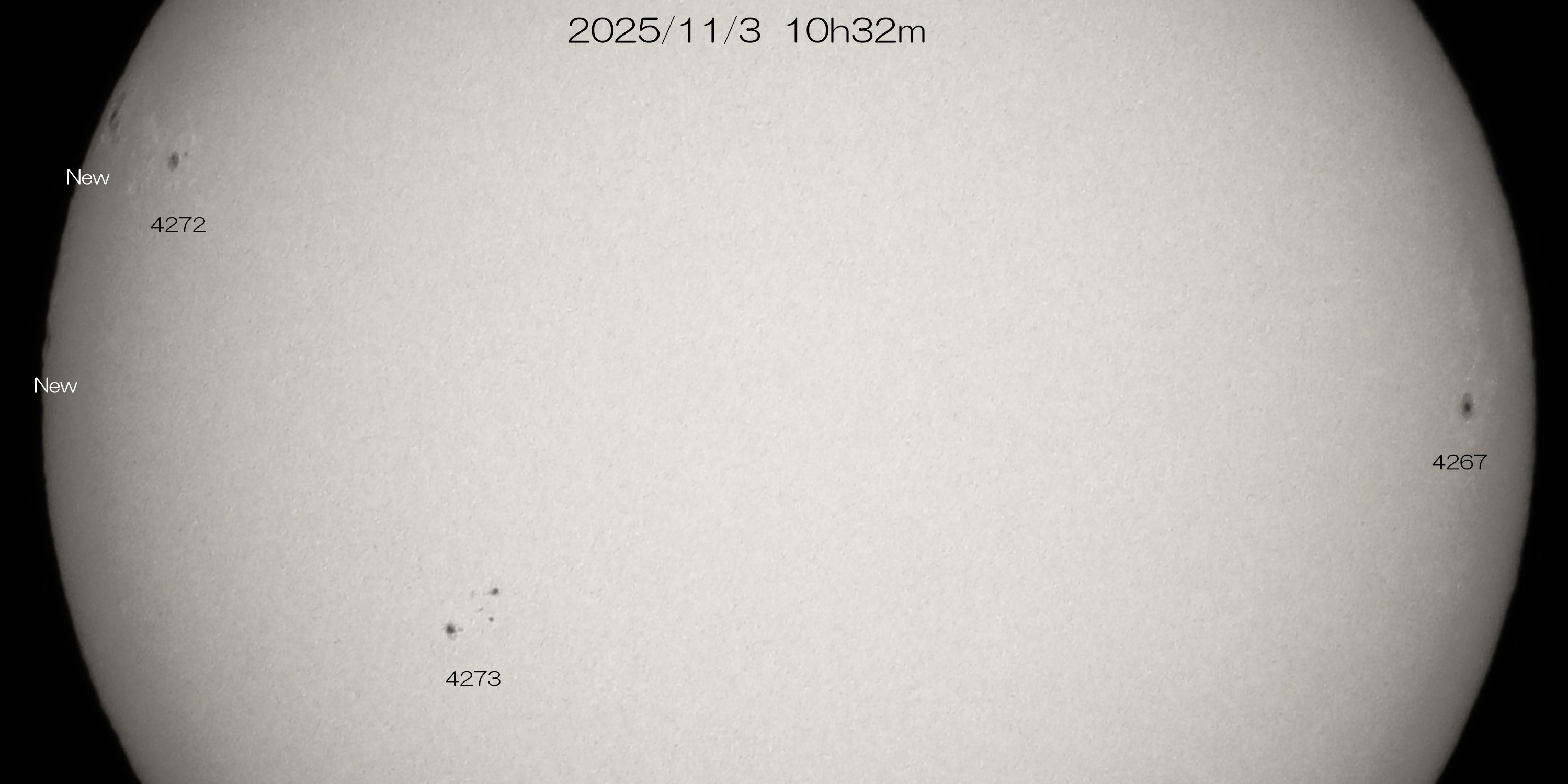 南東に4273群が現れ、東端から2つの新黒点群が出てきました。衛星画像では東端の向こう側に活発な領域があるようです。