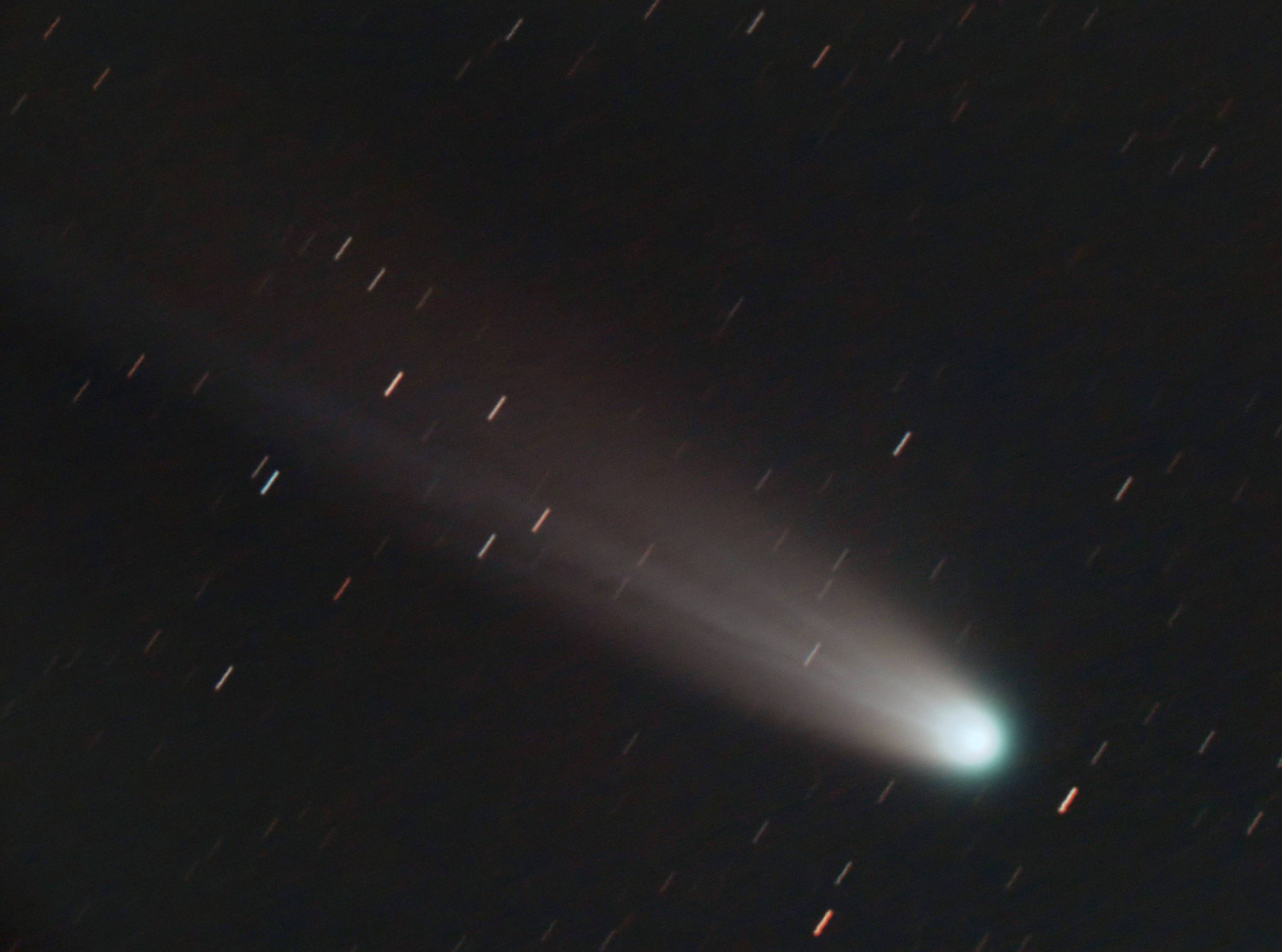 レモン彗星 C/2025A6 を1400 mm 10分露出で撮りました。中心のイオンテールの筋が分離して見えます。