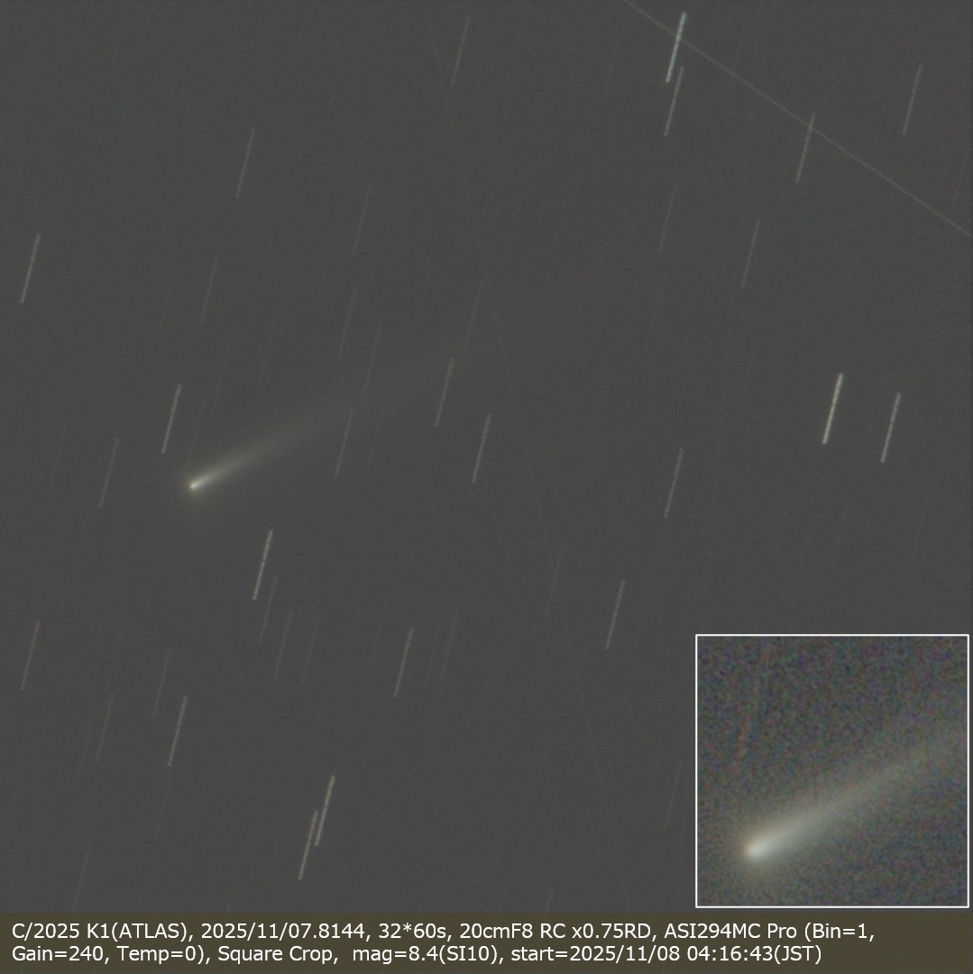 C/2025 K1(ATLAS), 2025/11/07.8144, 32*60s, 20cmF8 RC x0.75RD, ASI294MC Pro (Bin=1, Gain=240, Temp=0), Square Crop, mag=8.4(SI10)