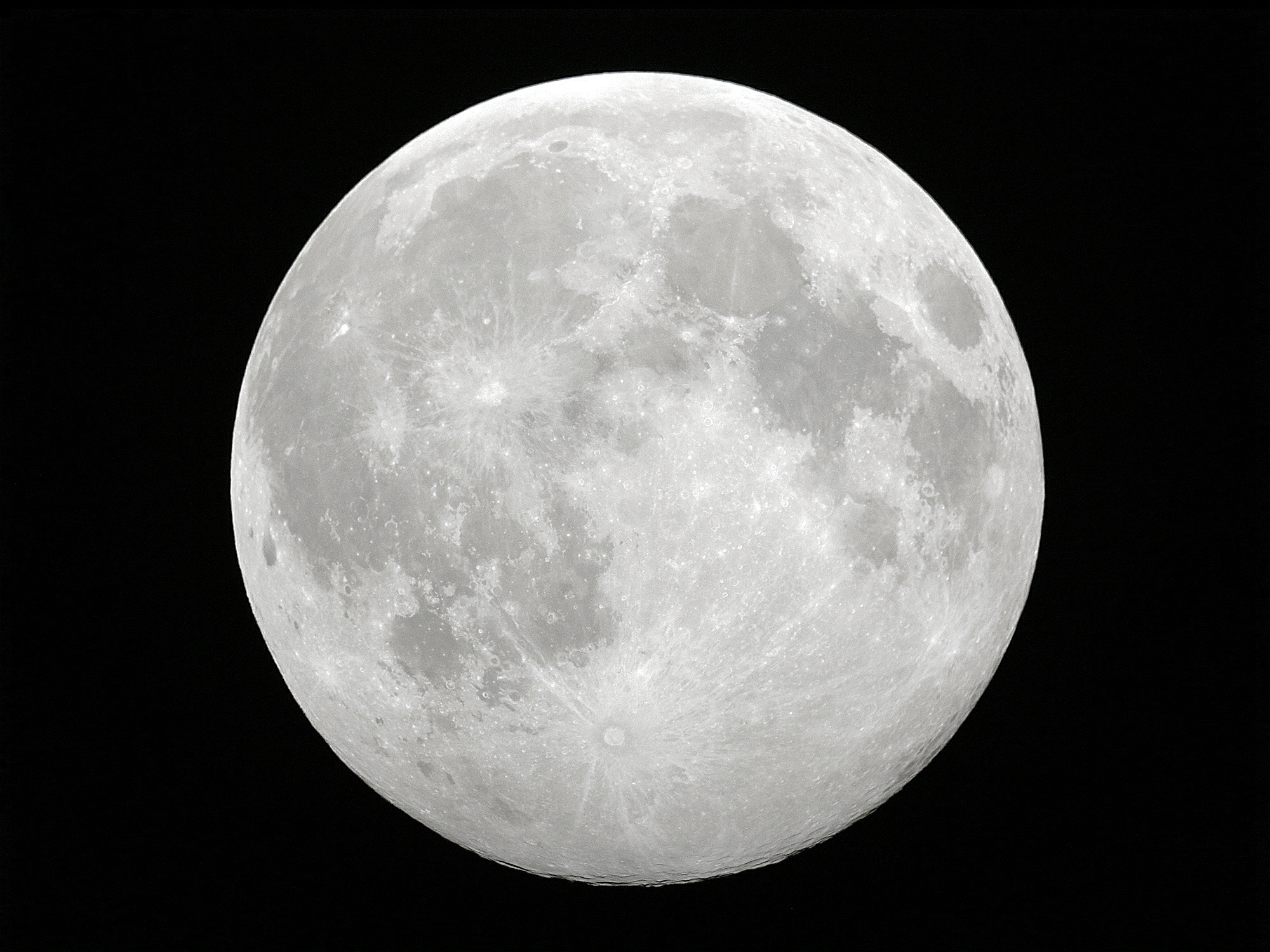 当地では薄雲が通過する時もありましたが、満月の時刻には晴天に恵まれました。 立体感を出したかったのですが、満月では難しいですね。