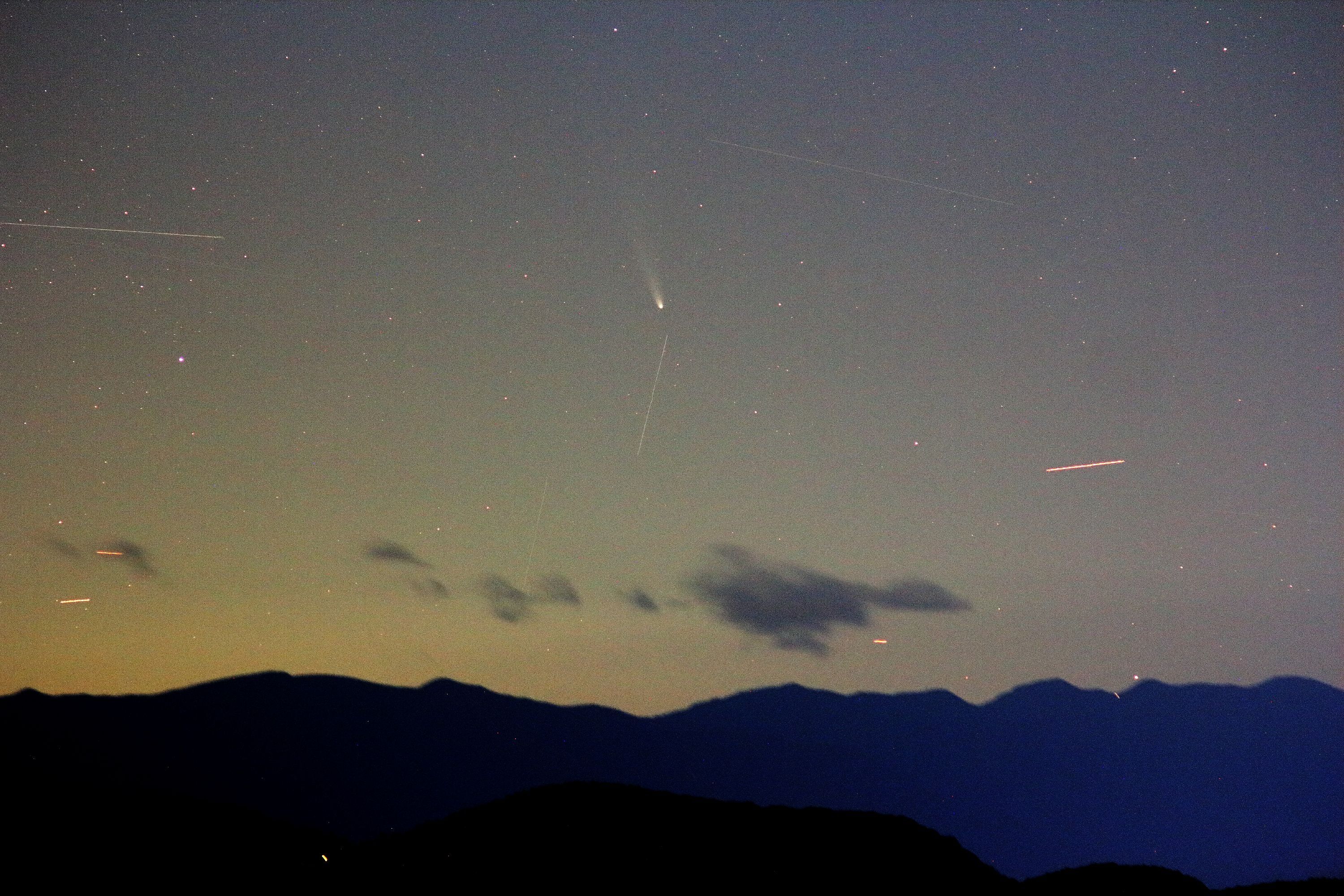 低空のため、航空機や人工天体がたくさん映り込んでしまった。