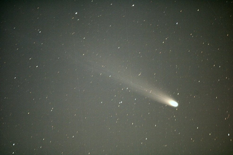 夕方に月が去って久しぶりの撮影です。かなり高度が低くなっていて薄明終わりには山に隠れそうなので早めに撮影しました。立派な尾は健在です。