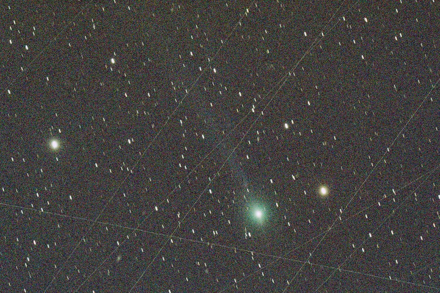 阿蘇車帰で撮影しました。60S16枚から強調しトリミングしています。尾が画像の端まで0.6度伸びておりビックリしました。アンチテイルもあるようです。縦アングルで撮影すべきでした。