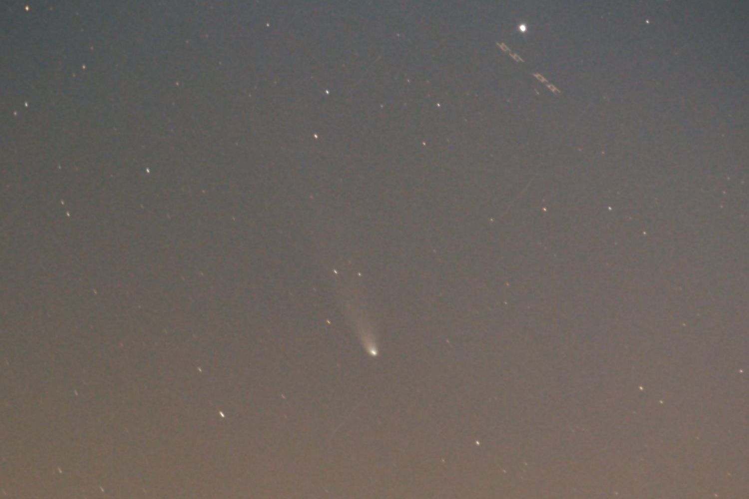 天文台のお手伝いに出掛け、観望会開始前に捉えることができました。 超低空の彗星を市内から撮影しましたが、さすがにこの程度の写りで、これでラストです。