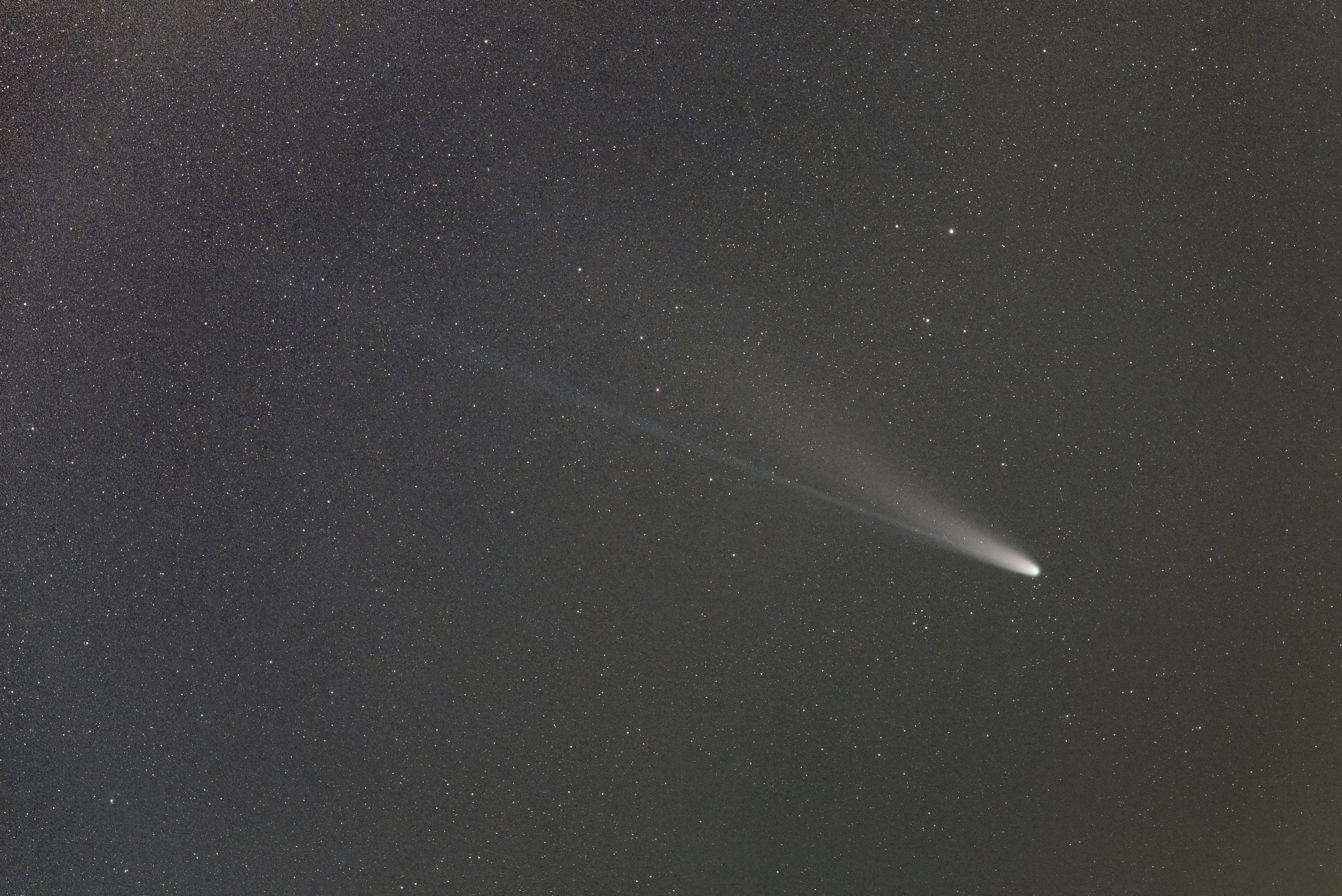 前日(竹田市)は快晴ながら彗星の所だけ雲が流れ今ひとつ。そこで高度が稼げる阿蘇まで出向きました。月明かりも去り近日点通過を控え彗星がどれだけ変化しているのか興味を持ちましたが、そこまで劇的な変化は起きていないような気がします。彗星の方向がちょうど熊本市の光害にどっぷりはまりカブリ処理に苦労しました。核はイオンの青緑色が出ずいろいろやってみましたが、他の方の写真を見ても当初のようには出ておらずそのまま処理しました。