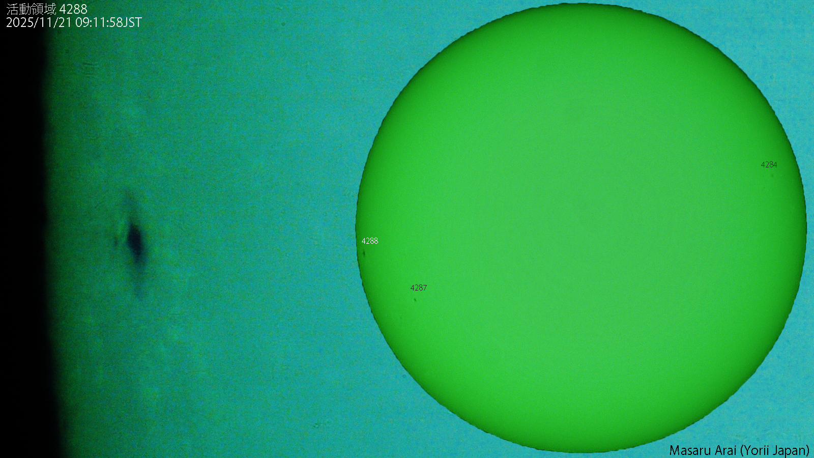 SE120L+DMC-GH1よる、活動領域 4288( Hsx/--- ) です。 NICT情報:活動領域4288などでCクラスフレアが数回発生し、最大のものは、活動領域4286で20日19時4分JSTに発生したC2.3/SFフレアでした。
