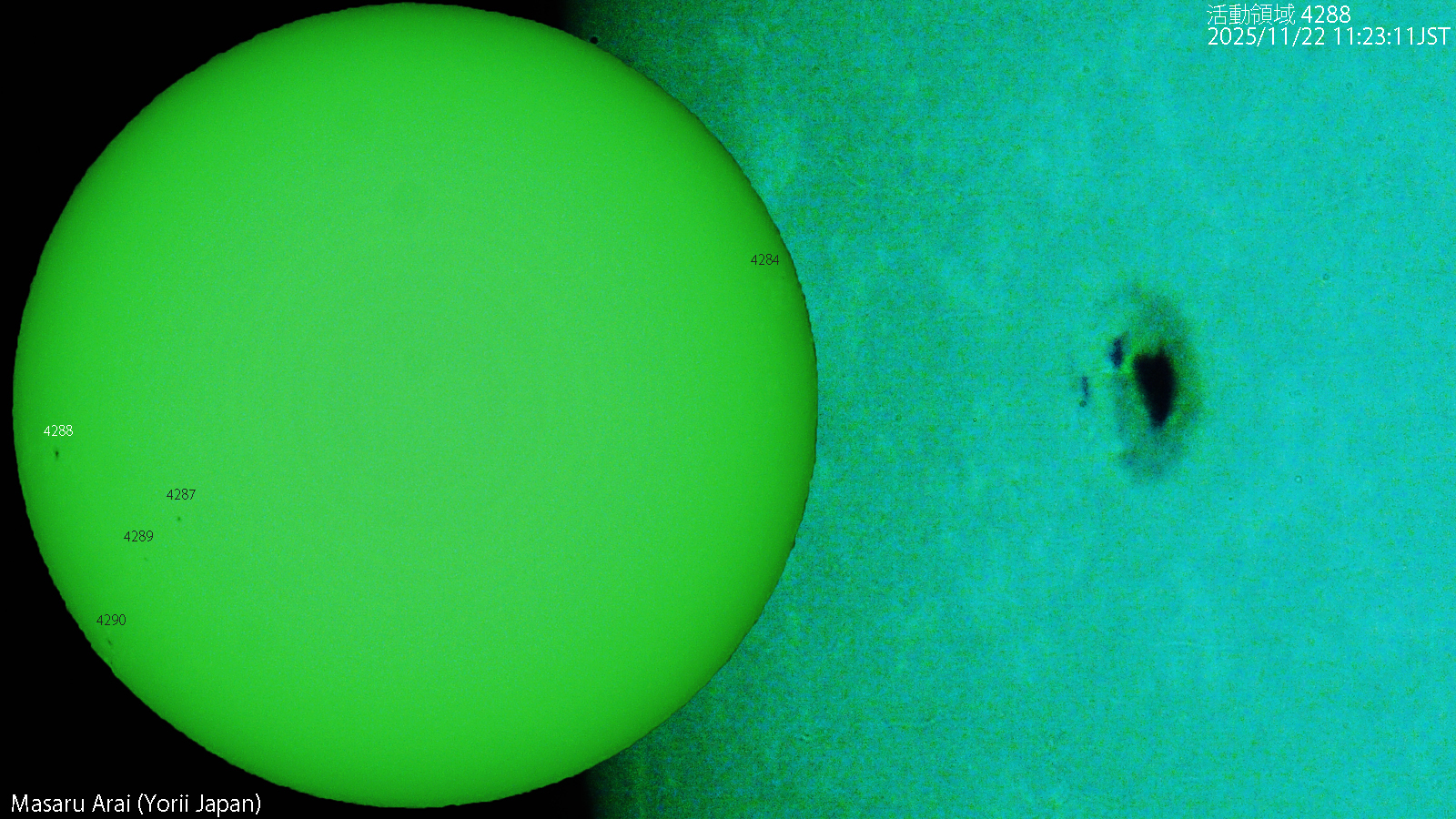 SE120L+DMC-GH1よる、活動領域 4288( Cso/Cso ) です。 NICT情報:活動領域4290などでCクラスフレアが数回発生し、最大のものは、活動領域4291で23日4時0分JSTに発生したC6.3フレアでした。