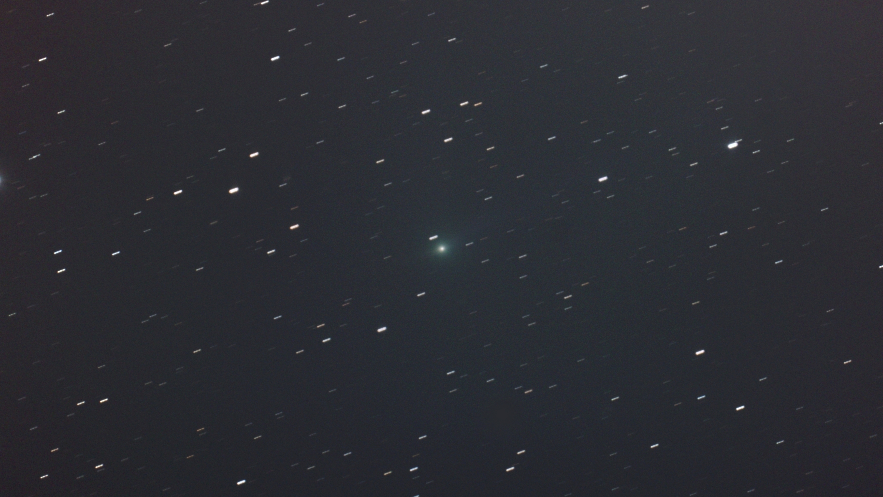コマコレクター(1.0×)併用、ISO:12800、総露出時間650秒 (10分50秒) (10秒×65コマ)、撮像範囲DX(24×16)、画質モード RAW、ホワイトバランスAUTO1、フィルター無し、赤道儀追尾 (彗星の赤経・赤緯 (視位置) で導入、ノータッチガイド)