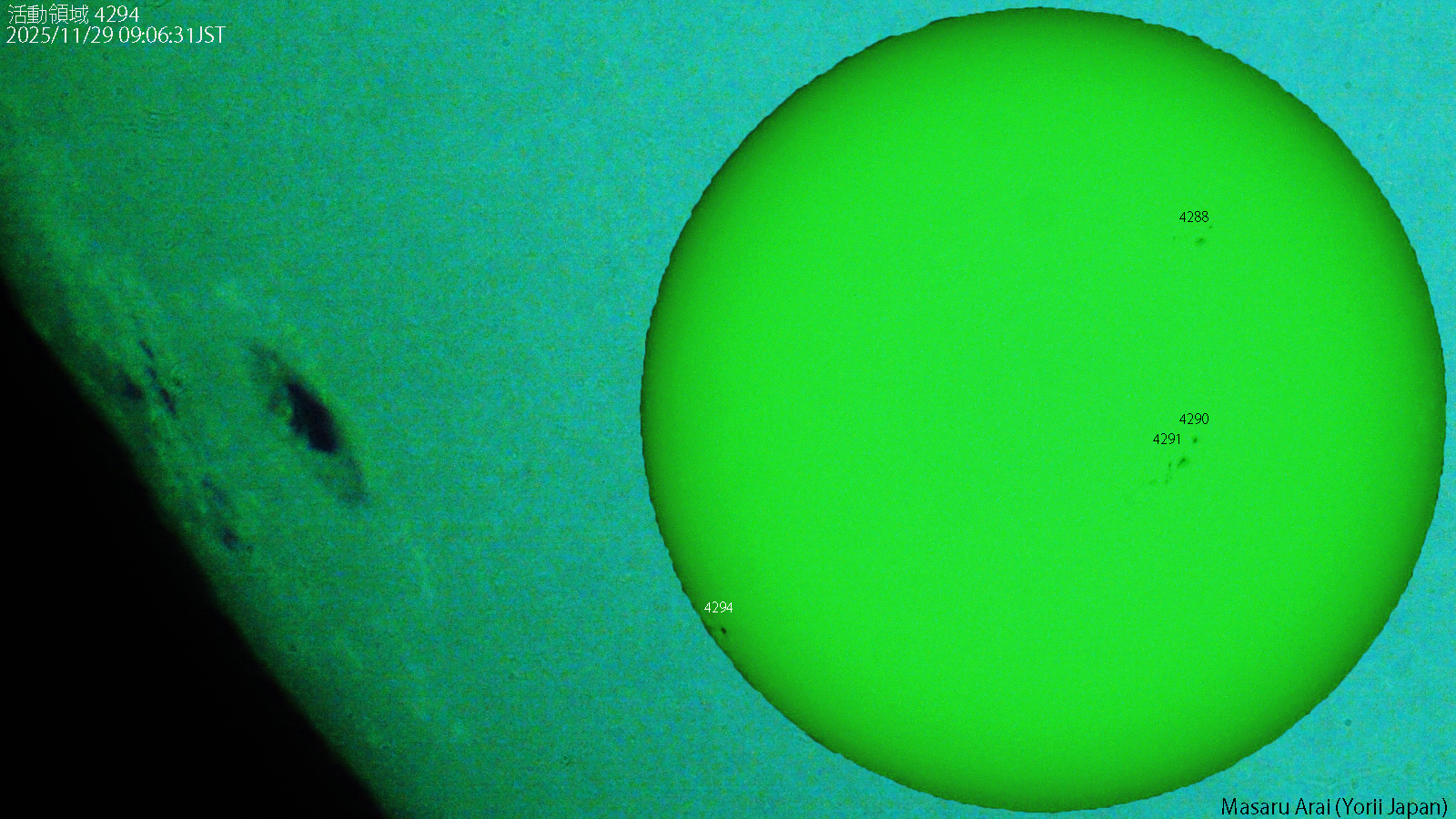 ・新たな活動領域4294が、大きな黒点群を率いて姿を現した。今後に期待。