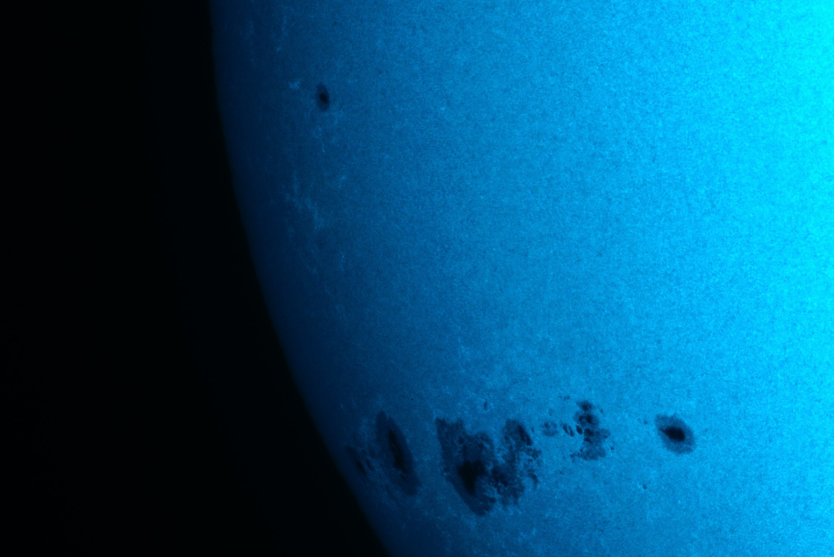 このもう少し上の4299を写してなかったのが不覚でありました(´・ω・`) 撮影の順番の運も無かったのですが...。 以前、フレア発生中(X1.6だったかな)の活動領域の周辺での雷光の出方を撮影した際に、当該活動領域の周辺から上向きに線が上がってた事があって、再度確認のチャンスだったのに(>_<)
